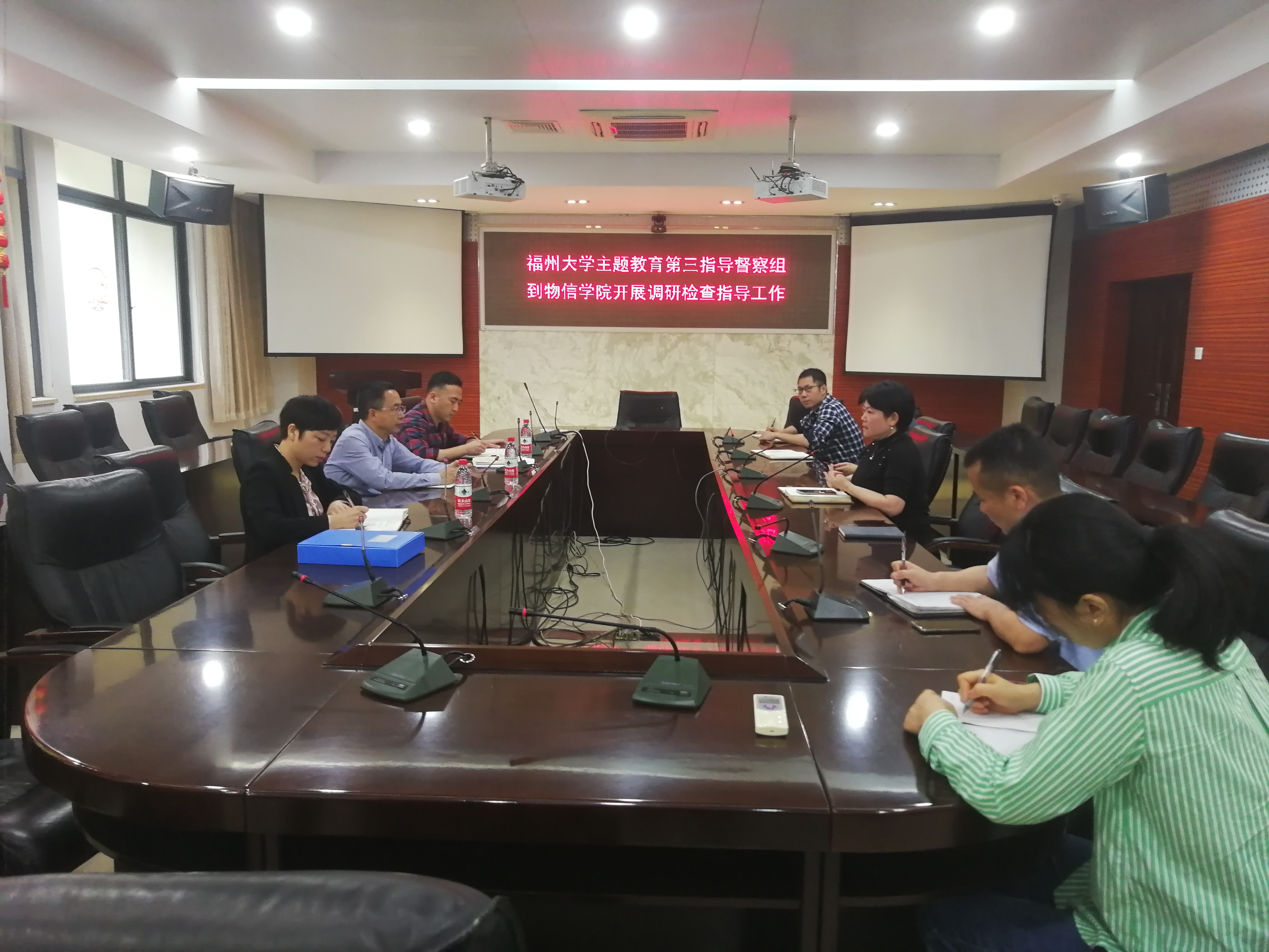 物信学院党委张红书记围绕动员部署、组织领导、理论学习、调查研究、检视整改、活动开展、宣传报道、特色做法等方面向第三指导督查组汇报了前阶段学院主题教育开展情况。