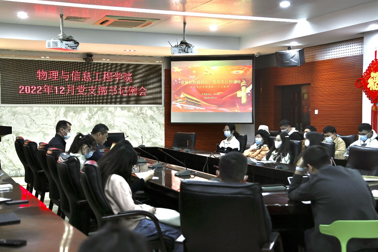2022年12月1日下午,物信学院在祥联厅召开12月份党支部书记工作例会,学院党委组织员王明老师主持会议,全体学生党支部书记参加了会议。
