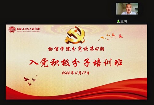 为深入学习贯彻党的二十大精神,进一步强化学生理想信念教育,引导学生牢记党的宗旨,自觉做共产主义远大理想和中国特色社会主义共同理想的坚定信仰者和忠实实践者,11月19日下午,物信学院邀请校党委组织部赵艳莉老师做《信仰的力量》专题讲座。学院党委组织员王明老师主持,学院分党校第41期入党积极分子培训班252名学员线上参加。
