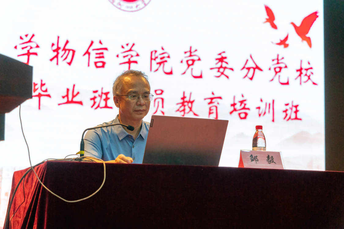 6月8日,物理学院第38期毕业班党员教育培训班在博学厅举行。校党委常委、纪委书记、监察专员邹毅研究员为毕业生党员讲授《走好人生第一步》廉政教育专题党课。物信学院党委领导、毕业班辅导员、292名毕业生党员聆听了党课。