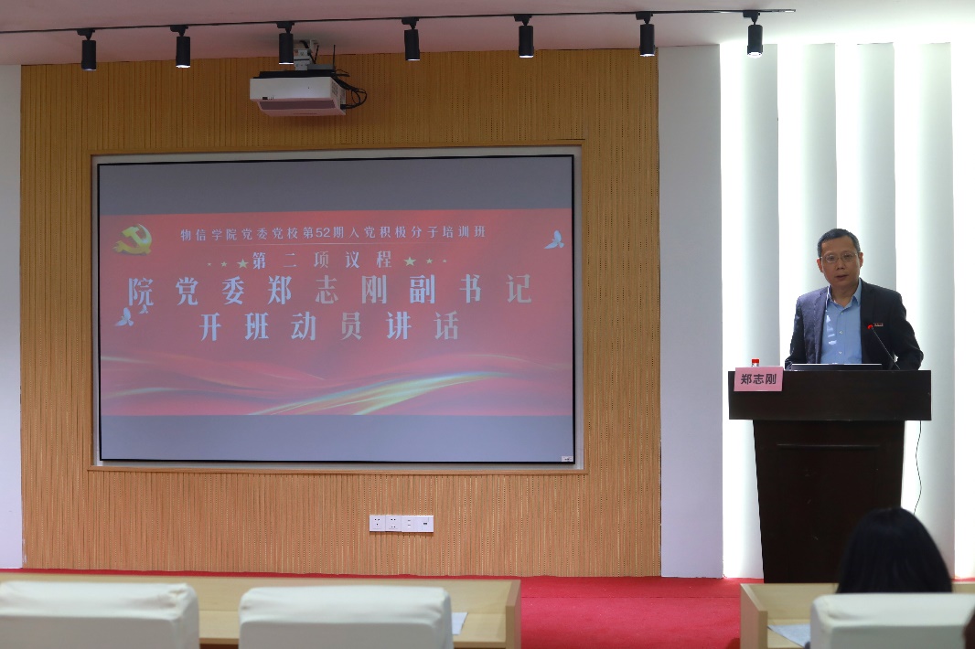 在开班仪式上,学院党委郑志刚副书记做开班动员讲话,希望学员们以此次培训为契机,加深对党的二十届三中全会精神、党的理论和政策的理解与认识,要求学员严肃认真对待培训,提高思想政治觉悟,坚定理想信念,端正入党动机,争取早日成为中国共产党的一员。
