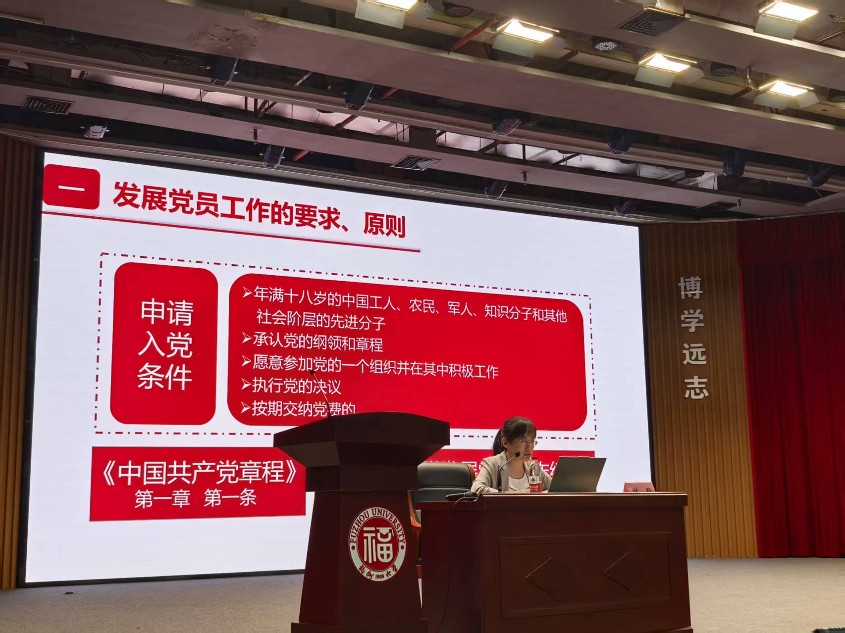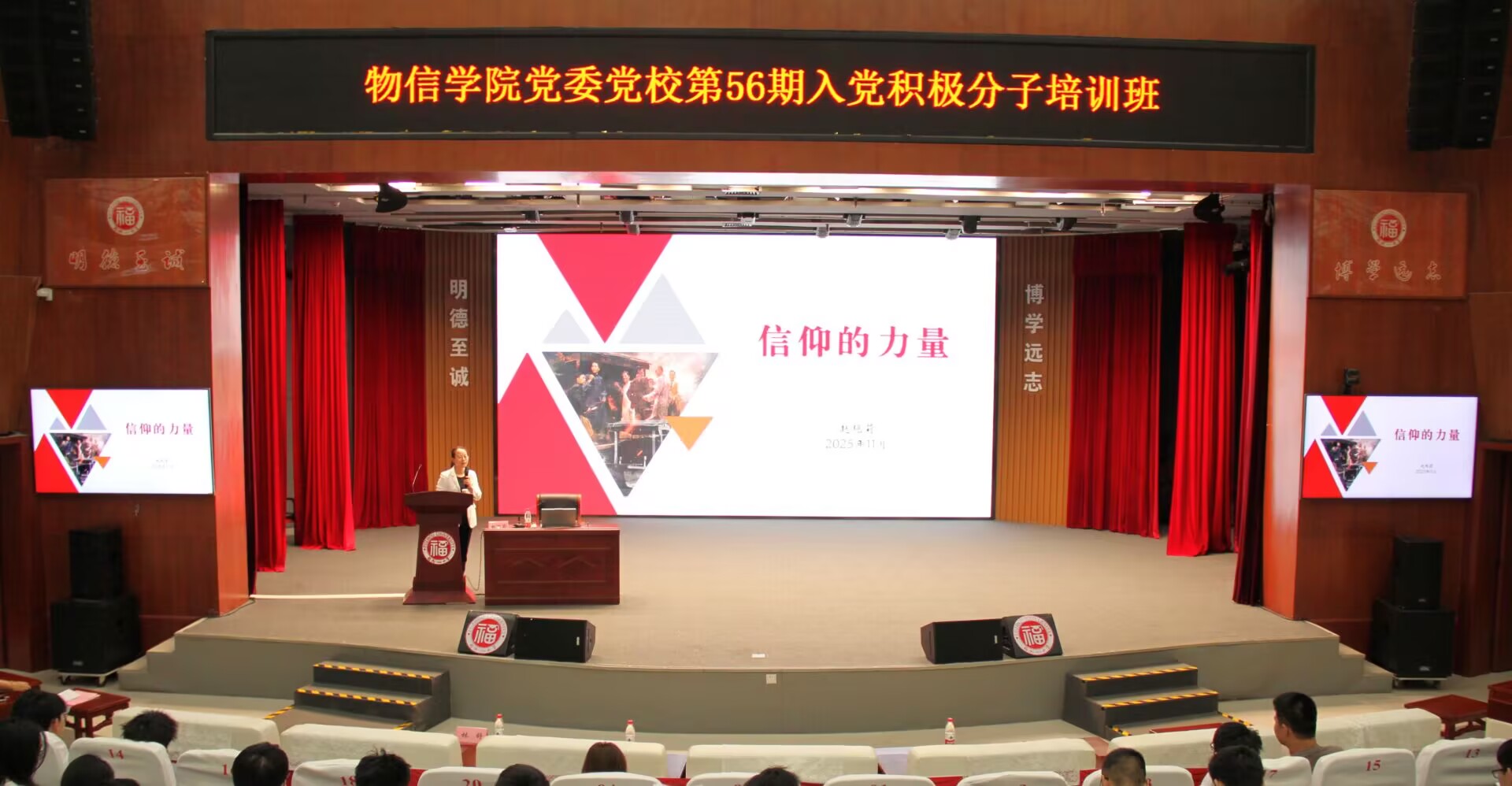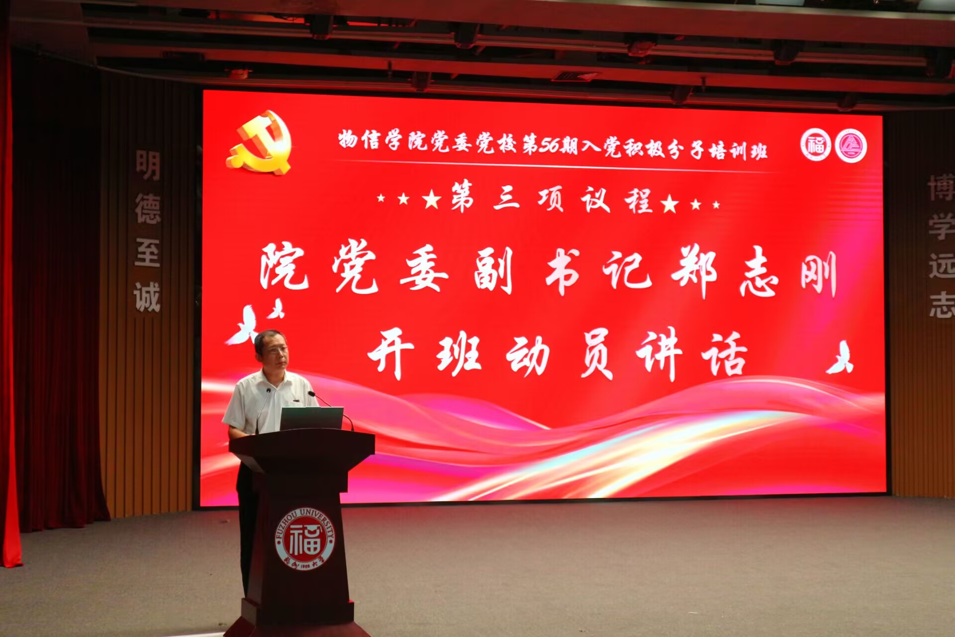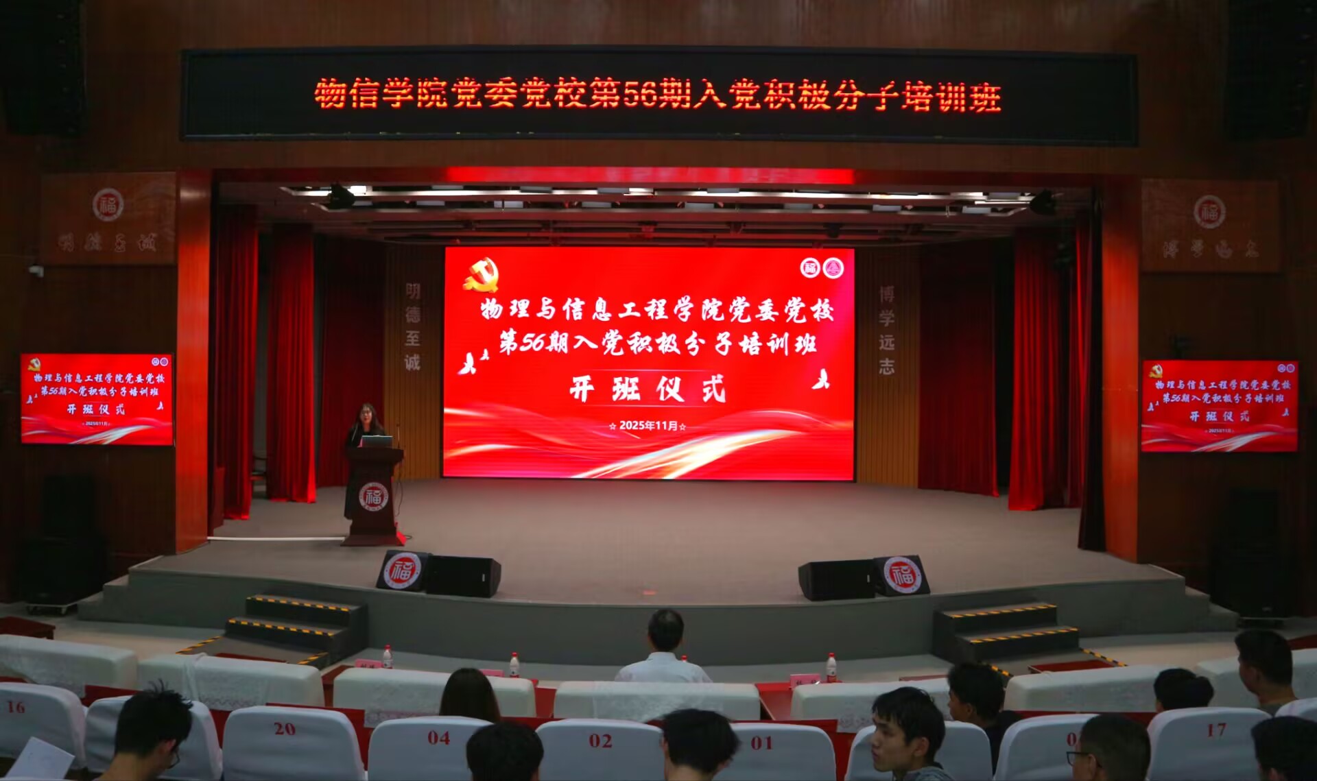 党委党校第56期入党积极分子培训班在旗山校区博学厅正式开班。学院党委副书记郑志刚、组织员刘媛及300余名学员参加仪式,开班仪式由刘媛主持。