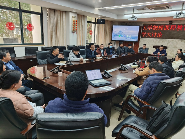 会上,大学物理课程教学团队各位教师紧紧围绕教育教学思想大讨论的目标和任务,结合大学物理教学实际,就大学物理教学现状、存在的不足与问题以及解决对策等方面进行深入交流和探讨。