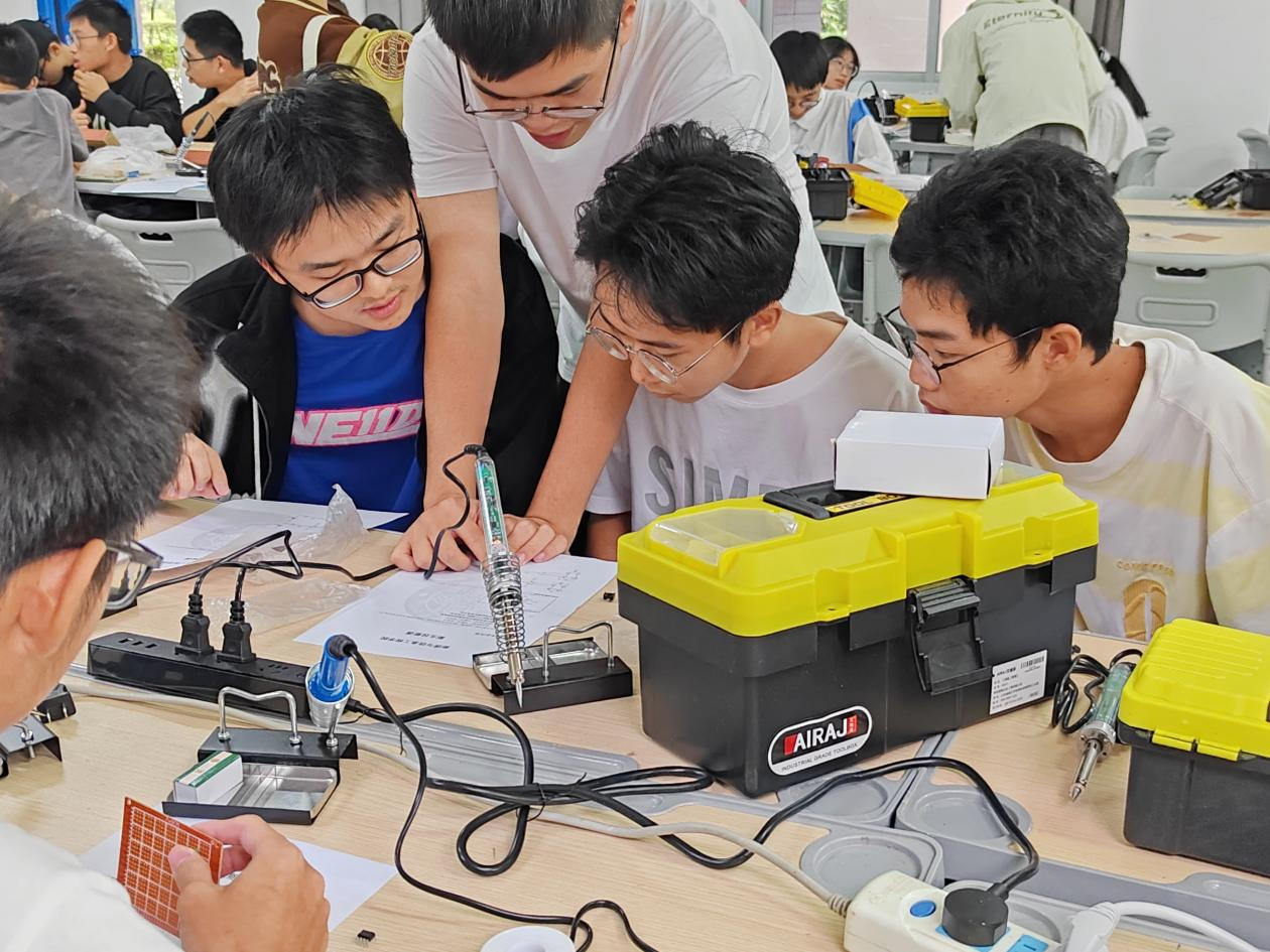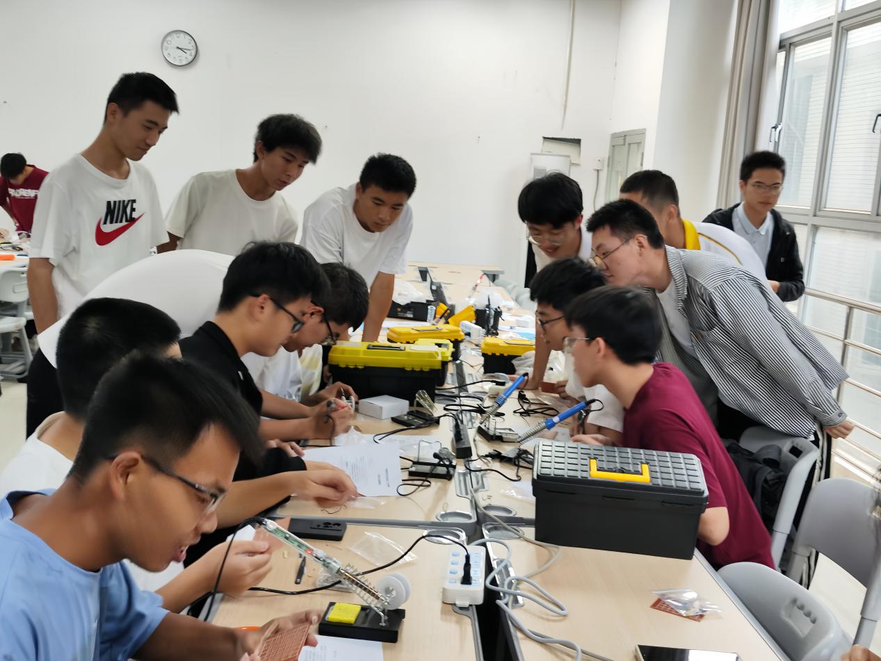 2023年11月24日,第二十四届新生焊接大赛于铜盘校区顺利开展。比赛过程中,同学们通过独立思考和互相讨论顺利完成了作品。经过激烈比拼,参赛队伍陆陆续续地将自己的作品上交进行检查,评委们逐一记录时间、器件借用情况,并以此作为评选优秀作品的标准之一。