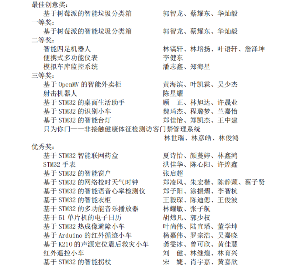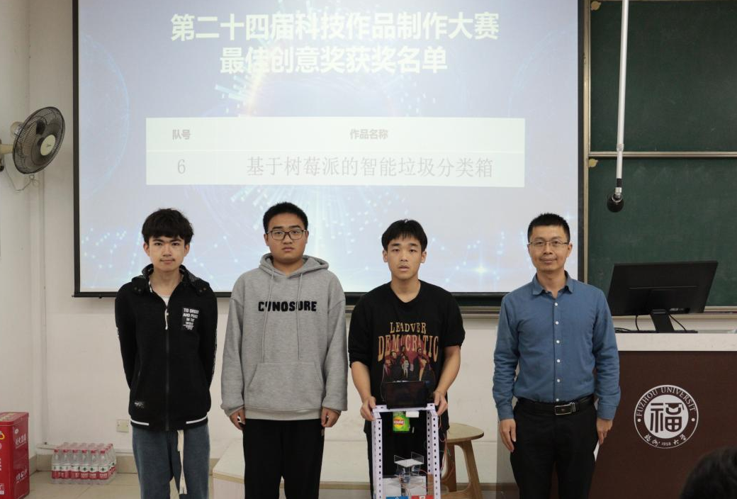 经过评委老师的评比讨论,最终《基于树莓派的智能垃圾分类箱》组收获了本届大赛的一等奖和最佳创意奖。