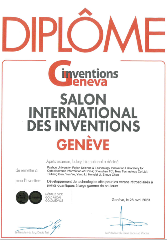 、闽都创新实验室以及深圳TCL新技术有限公司联合攻关的专利技术“大色域量子点背光显示器关键技术开发”斩获展会金奖,成果受到海内外人士高度评价。
