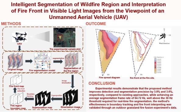 数字媒体技术系李建微研究员团队(万佳莉,通信与信息系统硕士研究生)、东北林业大学林学院孙龙教授团队(胡同欣副教授、李兴东副教授)与英国Ulster大学Huiru Zheng教授团队合作,在摄影测量与遥感领域的国际顶级期刊《ISPRS摄影测量和遥感杂志》(ISPRS Journal of Photogrammetry and Remote Sensing,中科院一区Top,影响因子:11.8)上在线发表了研究成果《无人机视角下可见光图像野火焰区的智能分割及火线的解译》(Intelligent segmentation of wildfire region and interpretation of fire front in visible light images from the viewpoint of an unmanned aerial vehicle, UAV)。该成果以Av在线看
