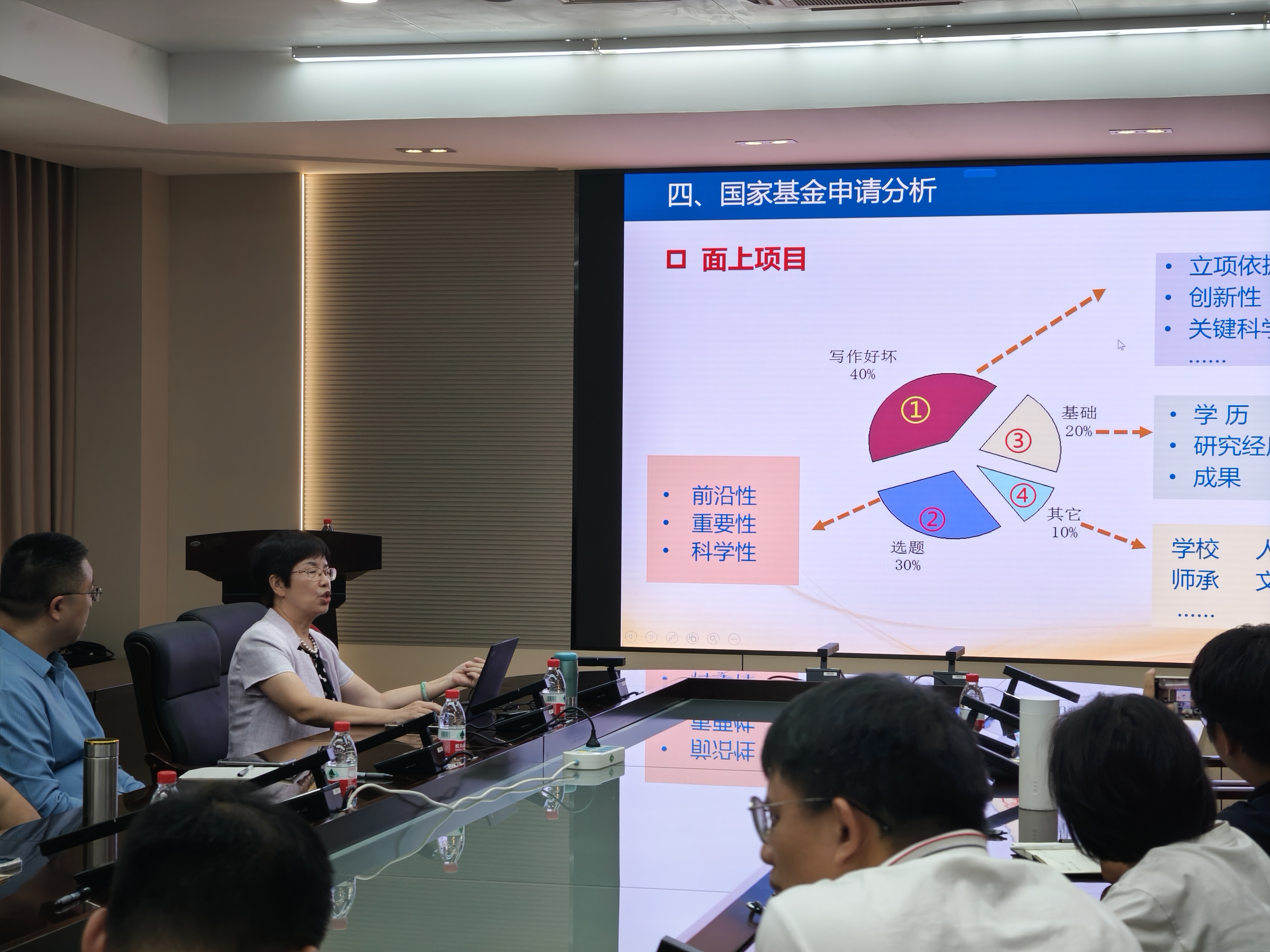 10 月 10 日,程树英院长为近三年新入职教师主讲指导会。她以 “理论 + 案例” 解读申报流程、政策要求与申请书写作要点,结合评审经验点明专家关注的创新性、可行性等核心维度,帮助新教师理清申报逻辑,夯实申报基础。