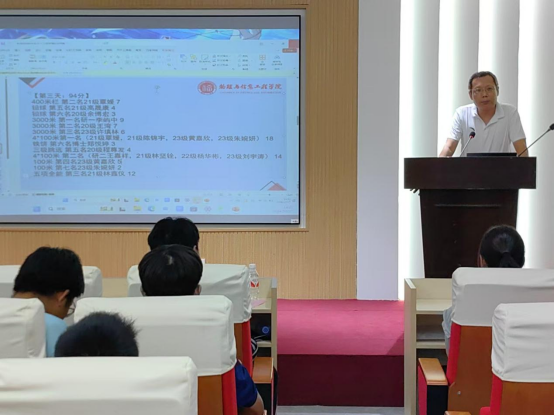 第三项议程是沈君涛老师上台发表讲话,沈君涛老师强调了体育运动对一个人的重要性,帮助运动员认识日常训练的重要性,令在座的运动员们深受启发。