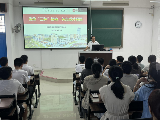 为进一步帮助Av在线看2024级新生了解校史院情,熟悉学校和学院基本情况,增强学生爱校爱院荣誉感,2024年9月2日,物信学院开展新生入学教育思政系列课程【4】—传承“三种”精神,矢志报国成才,本次课程由学院党委副书记郑志刚主讲,课程线上线下同步进行,Av在线看2024级本科和研究生新生共900余人参与本次课程。