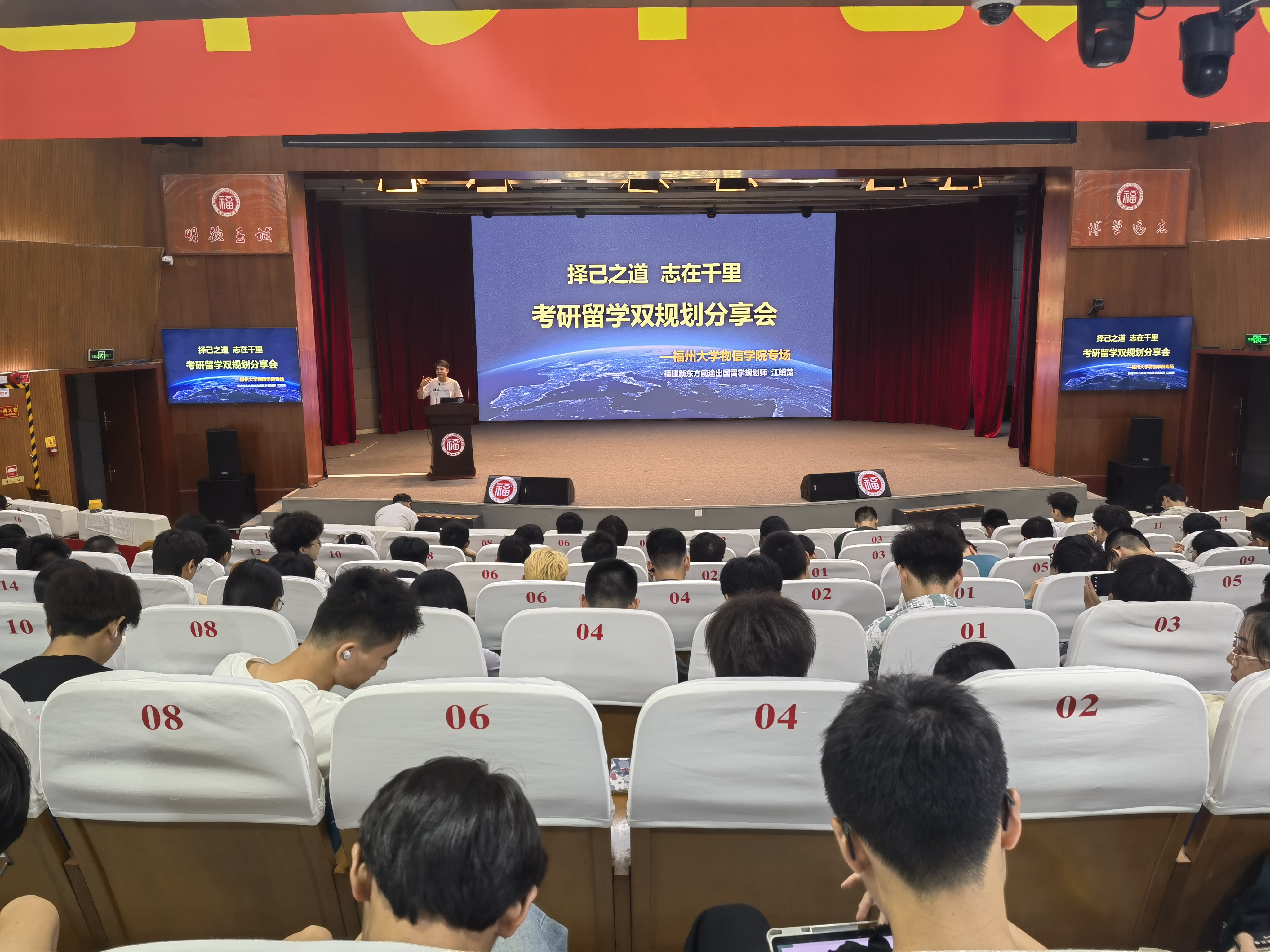 于图书馆博学厅成功举办以“择己之道,志在千里”为主题的考研留学双规划分享会。此次分享会邀请留学规划师江绍楚老师担任主讲。物信学院党委郑志刚副书记、本硕博各年级学生近400人参加了此次分享会。此次会议由2020级毕业班辅导员方德汕老师主持。