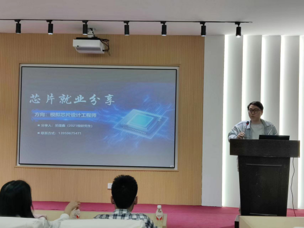 吴建鑫学长则从职业方向确立、意向公司岗位分析、就业准备、未来职业规划四个方向对IC行业就业进行了经验分享。他建议学弟学妹们要根据社会需要、所学专业以及个人兴趣爱好确定自己未来的职业方向,他认为要尽早开始关注自己意向的公司和岗位,分析公司以及自身需求,同时要在每次笔试和面试后总结归纳,从中总结经验、吸取教训、获得长进,才能帮助自己更好的实现高质量就业。