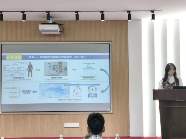 陈丽娜学姐则是从赛道、报名流程、作品提交等环节对“兆易创新杯”中国研究生电子设计竞赛进行了介绍。她着重分享了自己的参赛心得,包括初入团队时的迷茫、找到自己定位后的努力以及最终取得的成绩。她将自己取得总决赛团队一等奖等奖项的经验归纳成会思考、会实干、会表达、会合作、注意关键时间节点五个制胜法宝,建议大家要根据自己的目标制定好时间安排,抓好比赛的关键时间节点,多与同学交流沟通。
