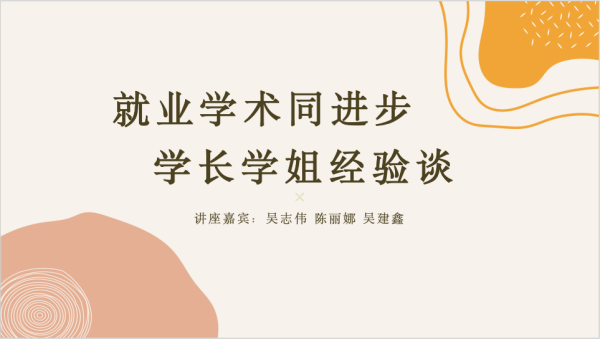 为了帮助学院广大研究生在学术研究和未来职业发展方面做好充分准备,明确个人发展目标与规划,4月18日物信学院在思源厅成功举办“就业学术共进步,学长学姐经验谈”的主题分享会。本次活动邀请了吴志伟、陈丽娜和吴建鑫三位嘉宾,他们分别从学术成果、参赛经历以及就业心得于大家进行了分享,为低年级的研究生提供了宝贵经验。
