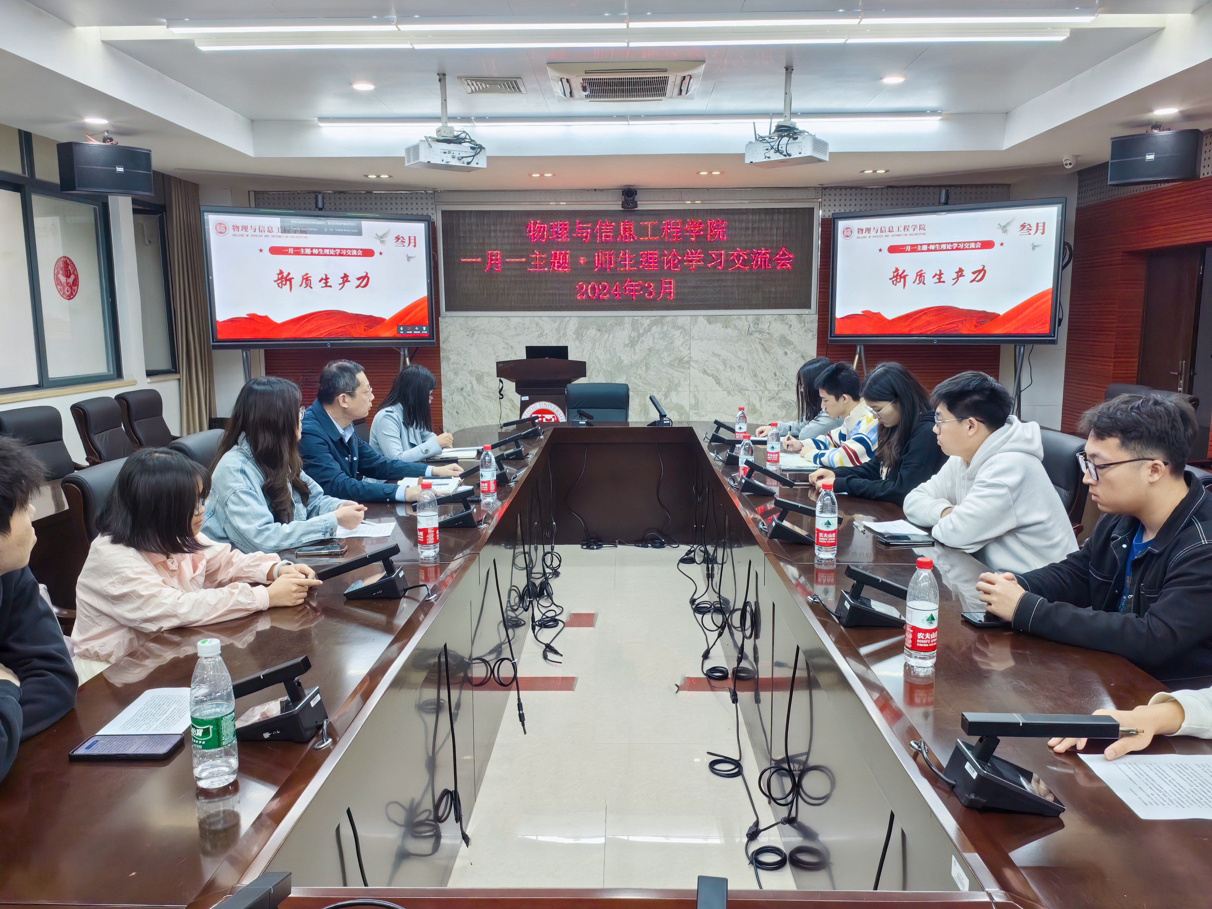 在祥联厅召开了3月份的“一月一主题”师生理论学习交流会。学院党委副书记郑志刚、2023级本科生辅导员周蓉芳及本硕博各年级学生代表共12人参与此次交流会。会议针对新质生产力和学生成长成才的关系进行交流讨论,此次会议由2023级研究生辅导员吴雨桐主持。