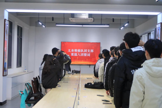 义务维修队团支部团员和青年主题教育组织生活会在入团誓词中圆满落下帷幕。未来,支部的团员将继续在学思践悟中不断修炼自我,在知行合一中主动担当作为,以青春之我、奋斗之我,为民族复兴铺路架桥,为祖国建设添砖加瓦”。