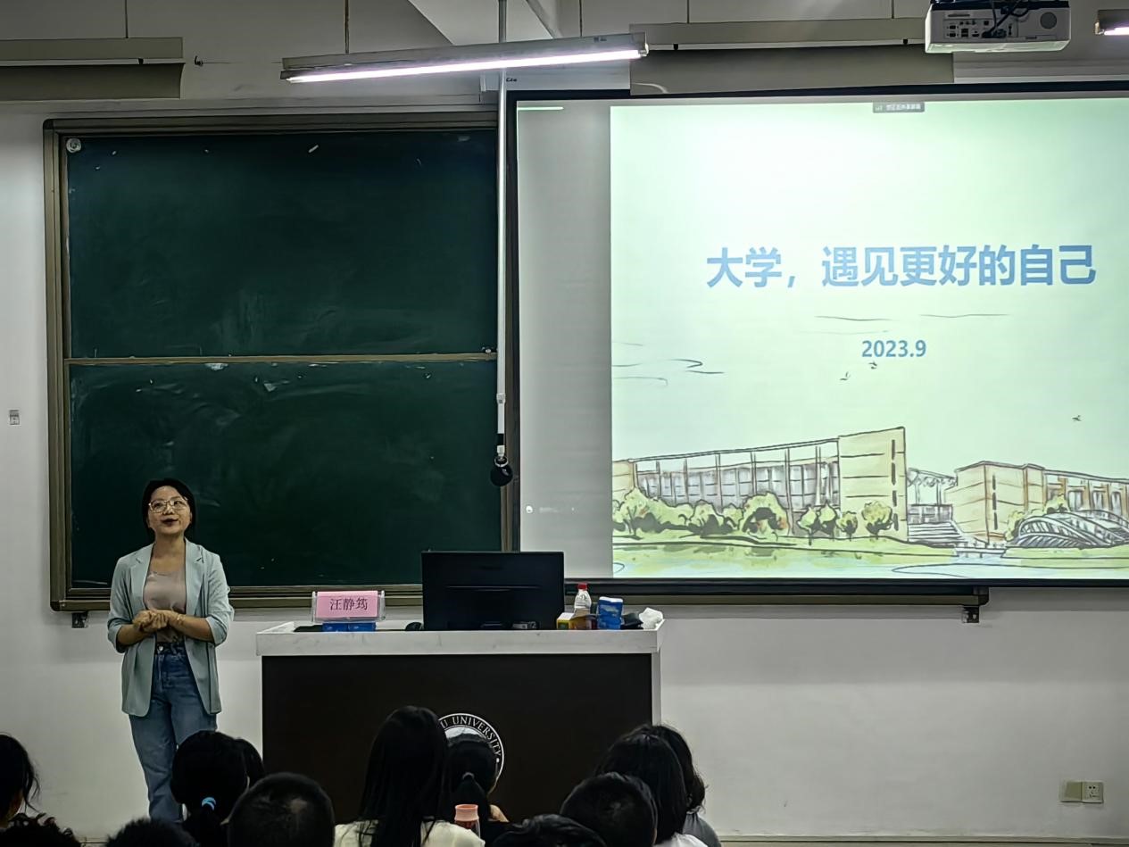 首先,汪静筠老师用详实的毕业生去向数据带领同学们深入分析了历年就业趋势变化,为初入大学的新生一扫心中的迷茫。同时她通过视屏教学的方式导入了推动中国变革的三个底层变量,强调当代大学生应适应时代、推动时代、改变时代。随后汪老师贴合大学生就业实际,从准备时间、准备方式、所需条件等方面详细讲解了考研、考公、留学、选调生等就业方式,帮助大学新生提前为自己的大学生涯做好规划。最后,汪静筠老师向同学们阐述了不同人生阶段的生活状态和树立人生目标的重要性,她认为大学的任务是立志和成才,在人生最为关键的时刻确立目标,越早规划并为之努力的人,将会抓住更多的机会,成就自己的精彩人生。