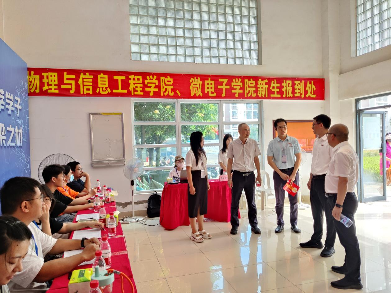 学院党委书记魏金明、院长卢孝强教授、党委副书记郑志刚、副院长李福山教授、副院长夏岩教授、副院长魏榕山教授莅临Av在线看迎新报到点,了解接待处、各班级报到点和新生信息采集处有关新生报道工作流程、迎新工作开展情况。在视察过程中,他们对学院井然有序、细致周到的迎新工作给予了充分肯定,并向迎新一线的工作人员和学生志愿者表示亲切慰问,赞扬了他们的热情服务和勇于担当、无私奉献的精神。