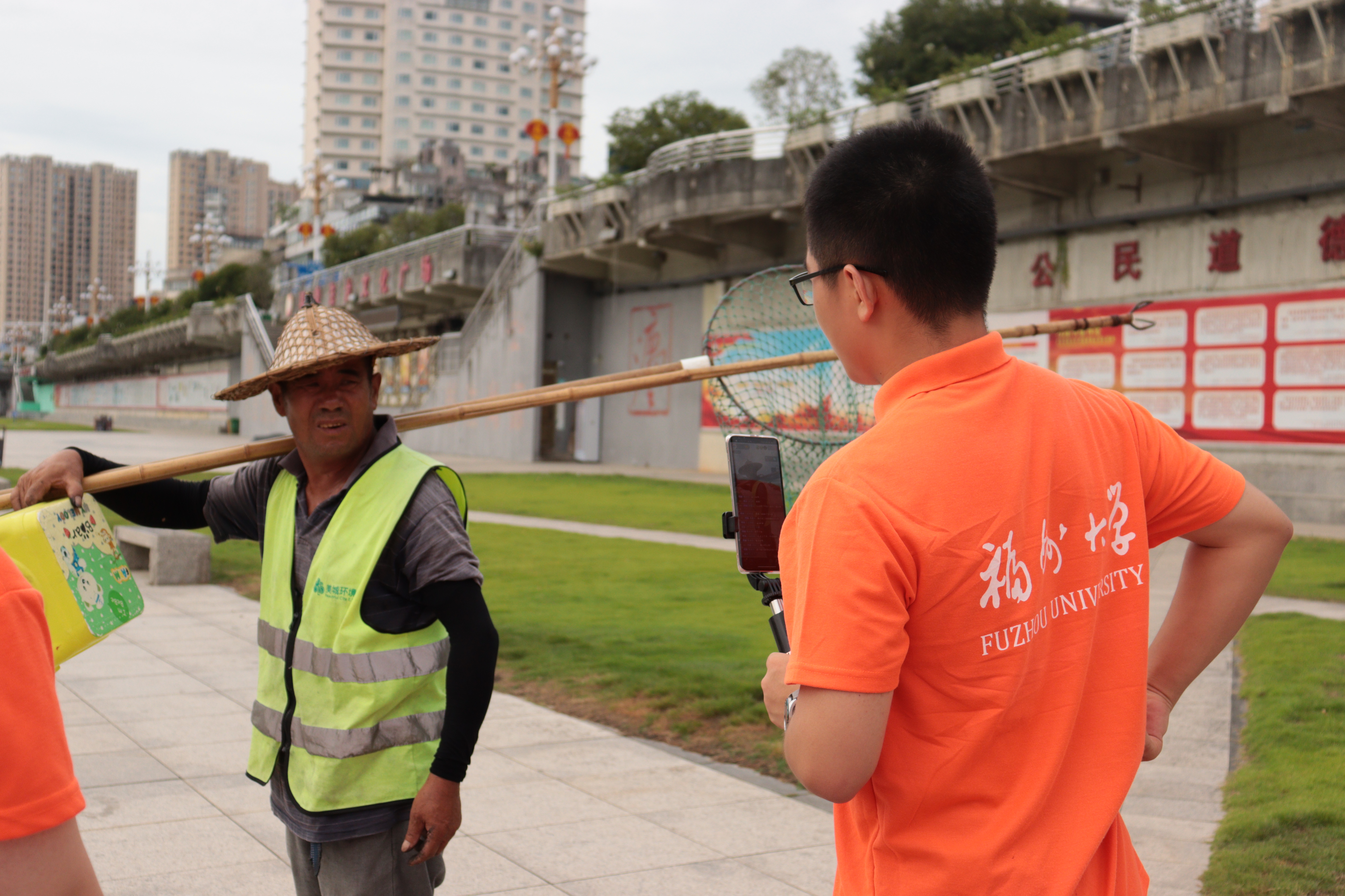 溪水深浅,映山眠。来到桐山溪岸,队员们一边欣赏沿岸自然景观一边对于污染源进行踩点,采访了沿岸垃圾打捞员,在了解桐山溪河流文化的同时调查福鼎市居民对于桐山溪生态文明的满意程度。