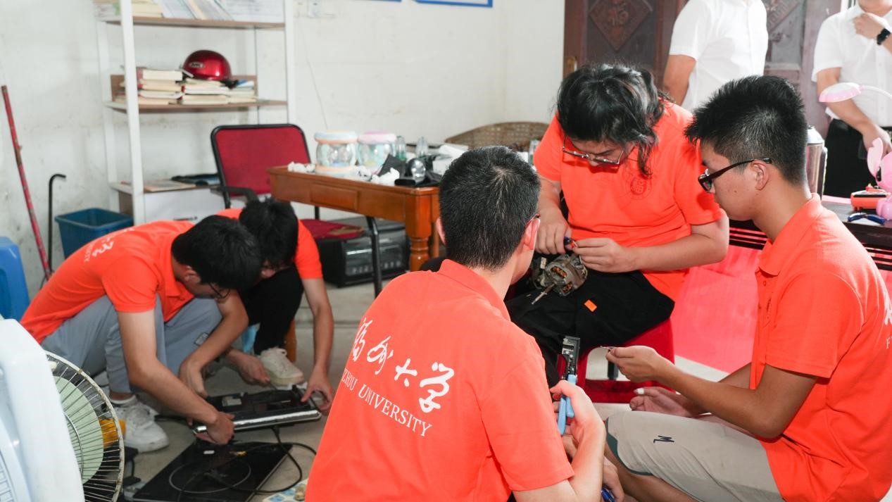 博士实践队、物信学院义务维修队帮助村民修理电器)