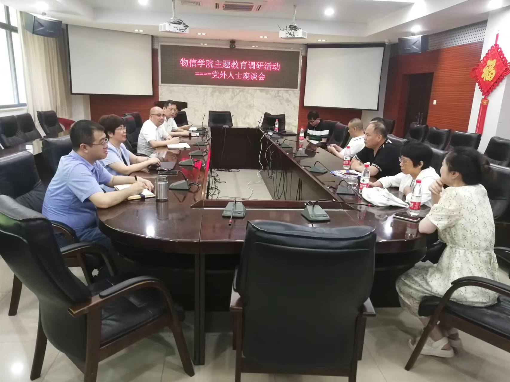 为推动学习贯彻习近平新时代中国特色社会主义思想主题教育走深走实,根据学院主题教育调研计划安排,6月26日上午,物信学院召开党外人士代表座谈会,围绕学院“一号工程”---新一代信息技术双一流学科群培育建设以及推动学院事业高质量发展进行专题调研。学院党政领导、学院党外人士代表参加了调研座谈会。