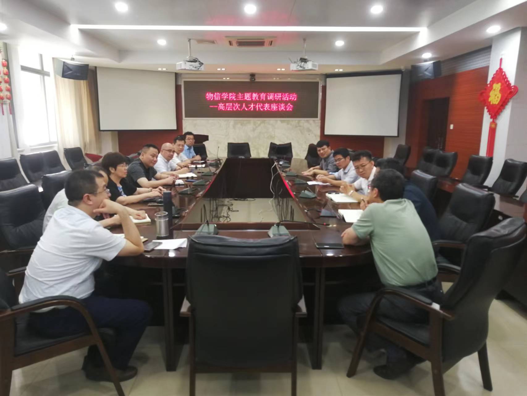 为推动学习贯彻习近平新时代中国特色社会主义思想主题教育走深走实,根据学院主题教育调研计划安排,6月25日下午,物信学院召开高层次人才代表座谈会,围绕学院“一号工程”---新一代信息技术双一流学科群培育建设以及推动学院事业高质量发展进行专题调研。学院党政领导、学院高层次人才代表参加了调研座谈会。