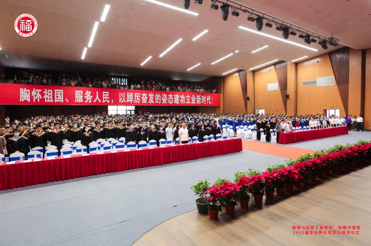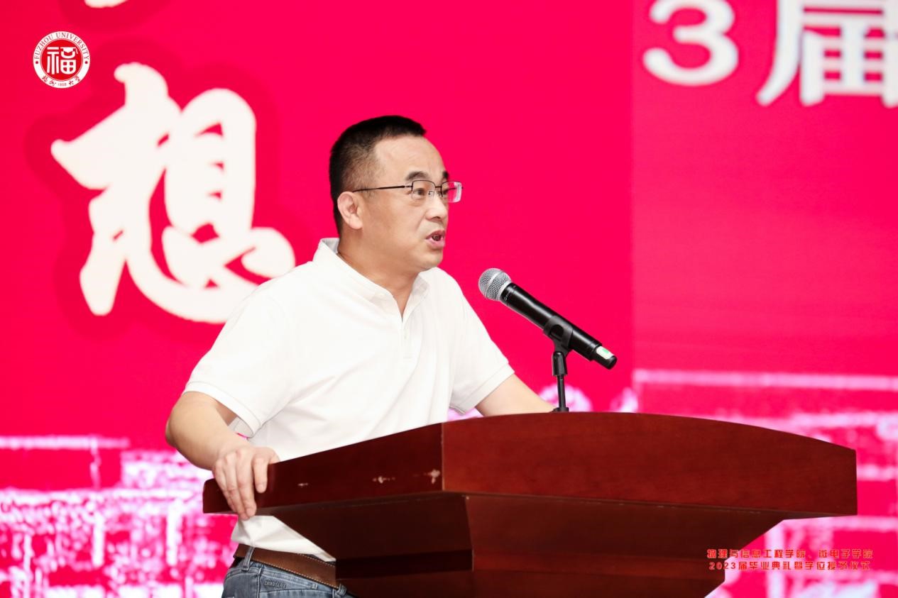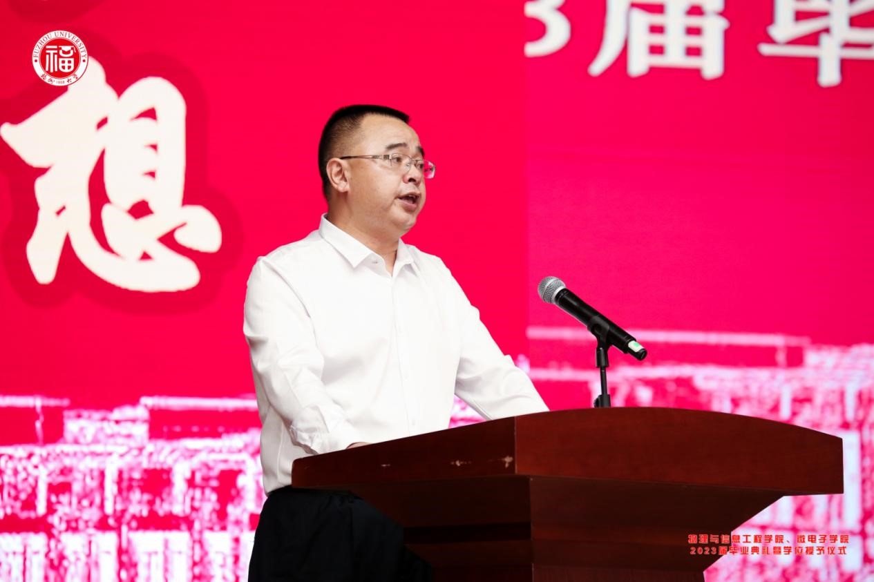 学院党委魏金明书记发表毕业致辞。他首先代表学院党政领导和全院师生对圆满完成学业的本、硕、博的莘莘学子表示热烈祝贺,并与大家一铜总结回顾了学院近年来在学科发展、科研创新以及学生工作上取得的成就。紧接着,魏金明书记对毕业生提出了三点离别嘱托:一是要一是要修身自律,终身立德。二是要自主学习,终身学习。三是要久久为功,终身实干。在致辞最后,书记殷切嘱托毕业生需秉承母校“明德至诚,博学远志”校训,成为母校三种精神的发扬者、传承者、实践者,为全面建设社会主义现代化国家、全面推进中华民族伟大复兴贡献福大物信人的力量。