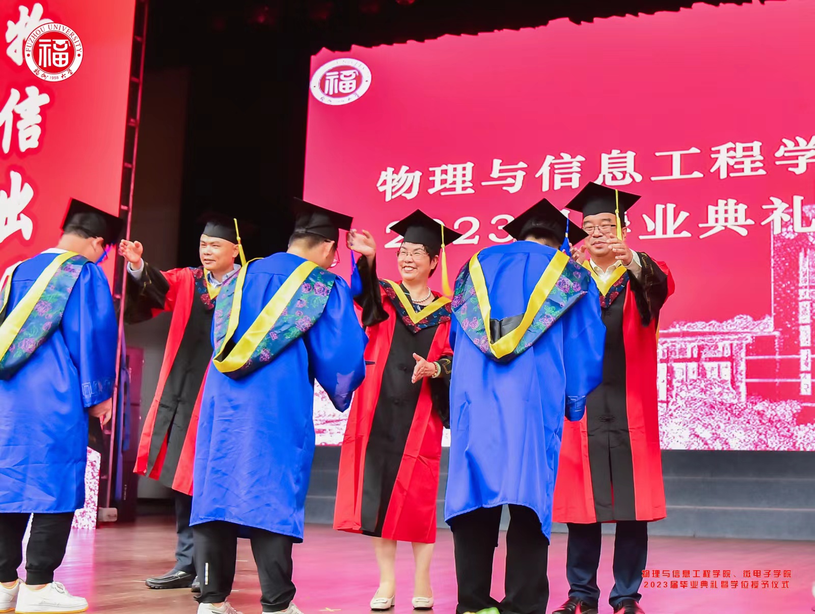 在学位授予仪式上,导师程树英教授、李福山研究员、夏岩教授,魏榕山教授,黄立勤教授,吴怀志教授,赵铁松教授,郑海峰教授上台为2023届毕业生执拨穗礼。