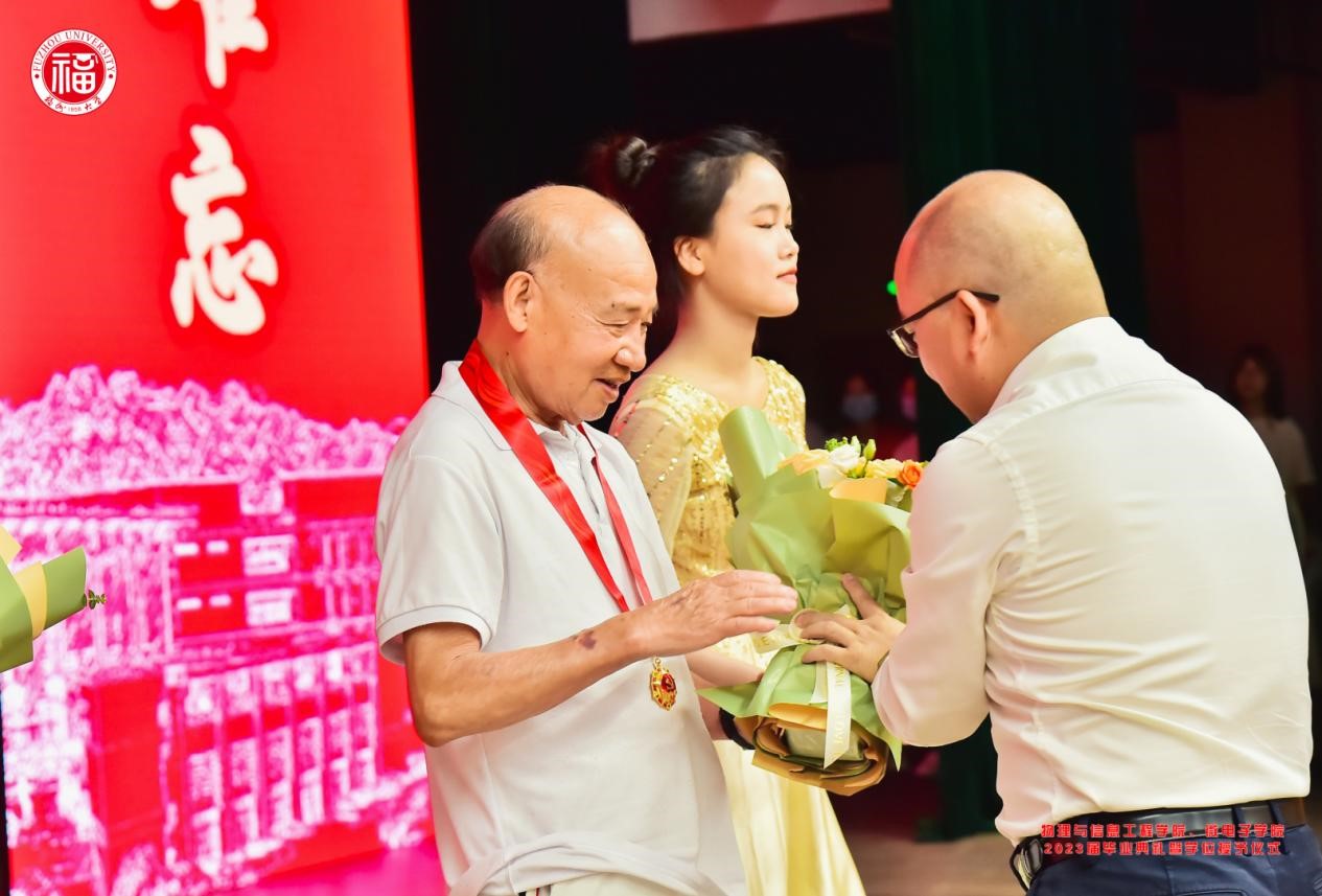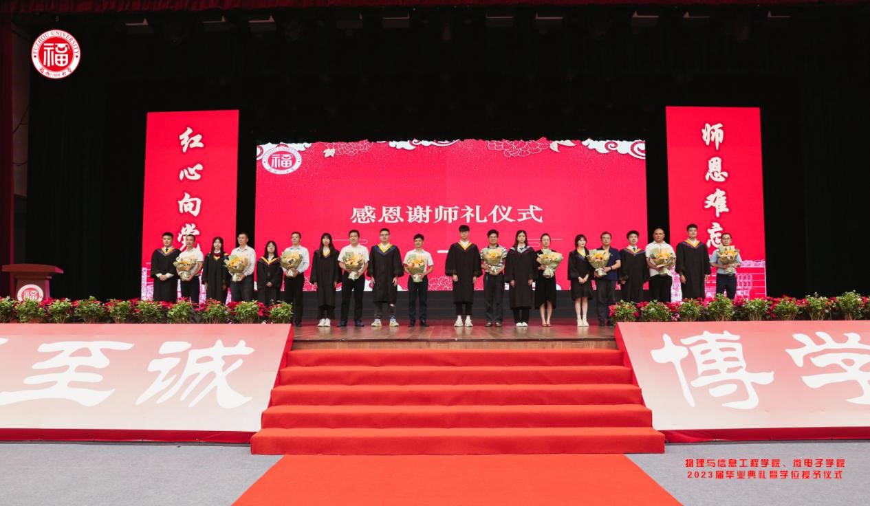 在接下来的感恩谢师礼上,郑海峰老师、黄立勤老师、赖云锋老师、吴朝兴老师、施隆照老师、陈思喜老师、钟志荣老师、赖松林老师、王明老师、苏海姬老师作为代表上台接受了来自毕业生代表们的献礼致谢。