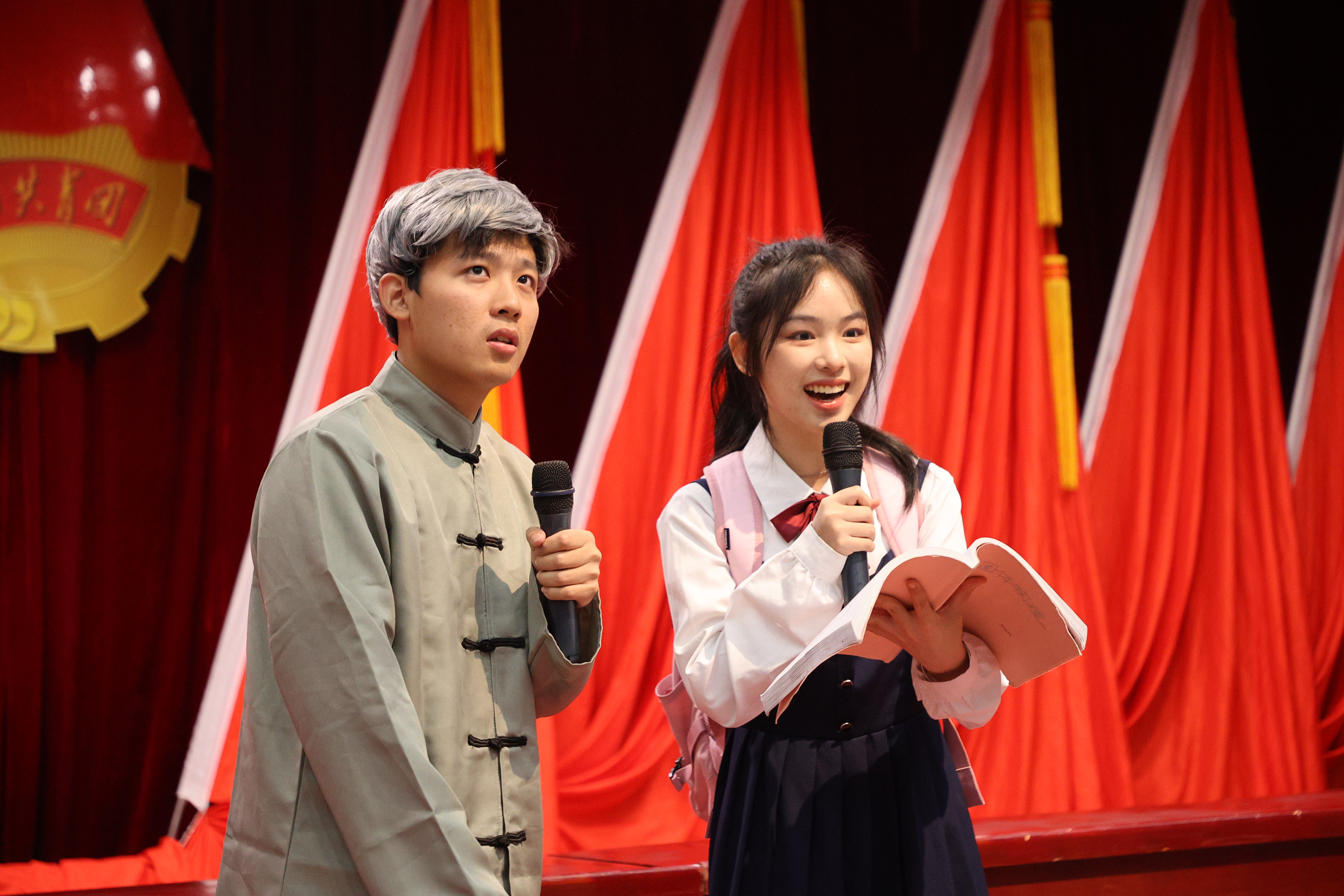 最后,物信艺术团的同学们带来在校“奋进青春·强国有我”朗诵比赛中获得第一名的精彩诗朗诵《守望》,将全场气氛推至高潮。