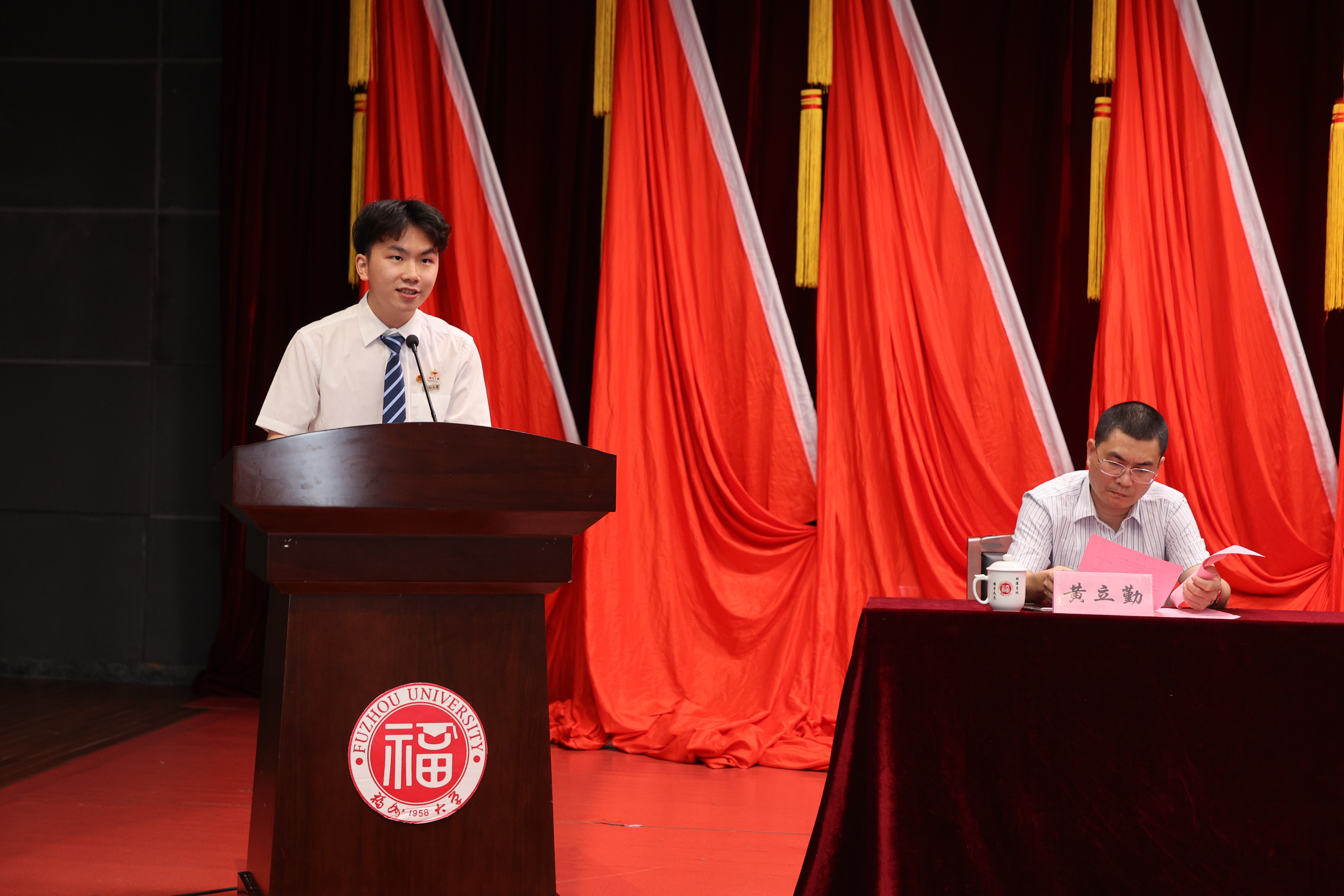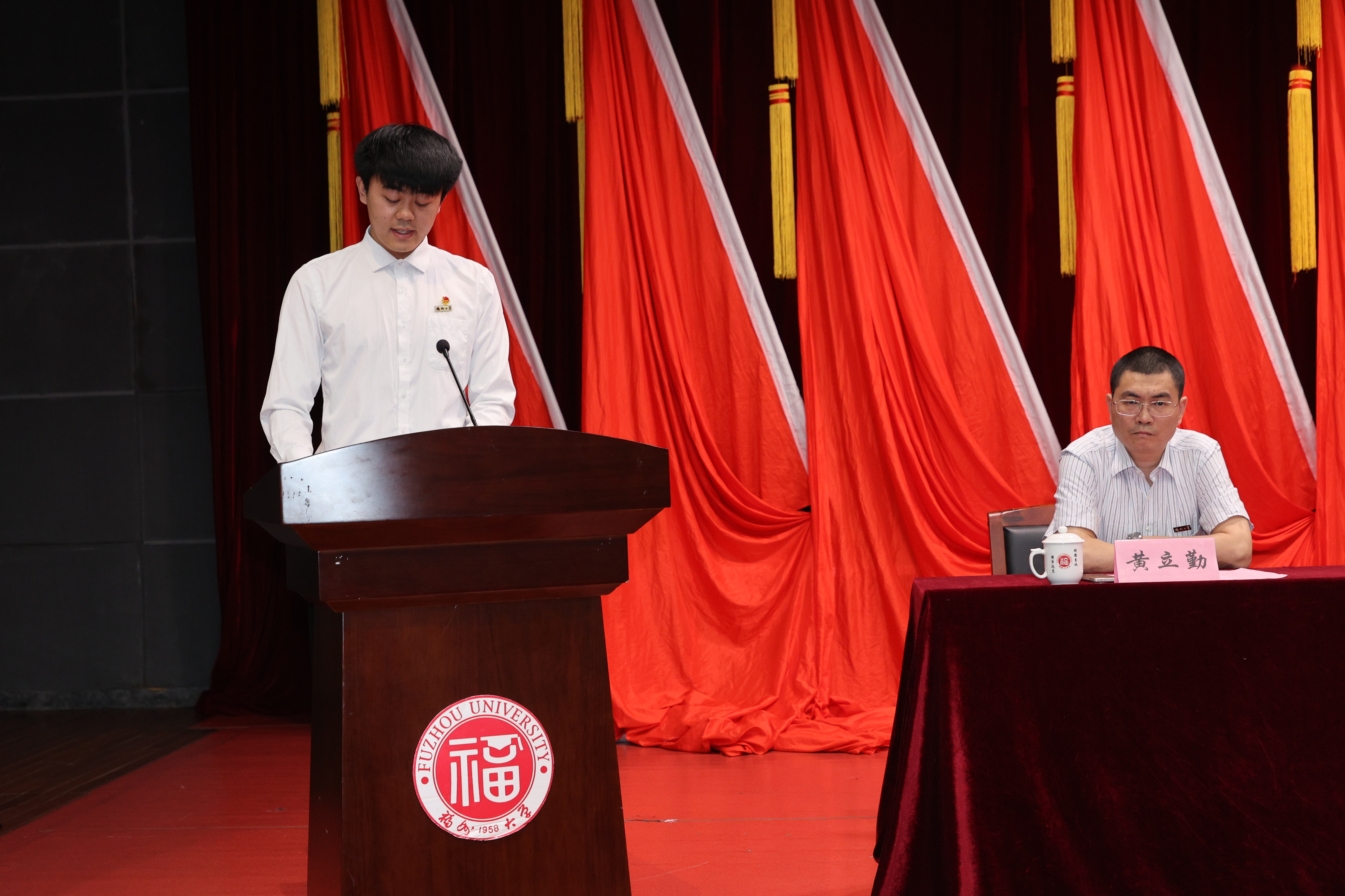随后,院党委魏金明书记发表讲话。他回顾了学院一年以来青年工作取得的可喜成绩,并向全院团员、青年师生提出三点希望:一是要胸怀祖国,坚定信念;二是要努力拼搏,立志成才;三是要甘于奉献,不懈奋斗。他勉励大家以伟大五四精神为激励,秉承“明德志诚、博学远志”的校训,发扬福大“三种精神”,做心怀家园、求真务实、锐意进取、勇于开拓的物信新青年。