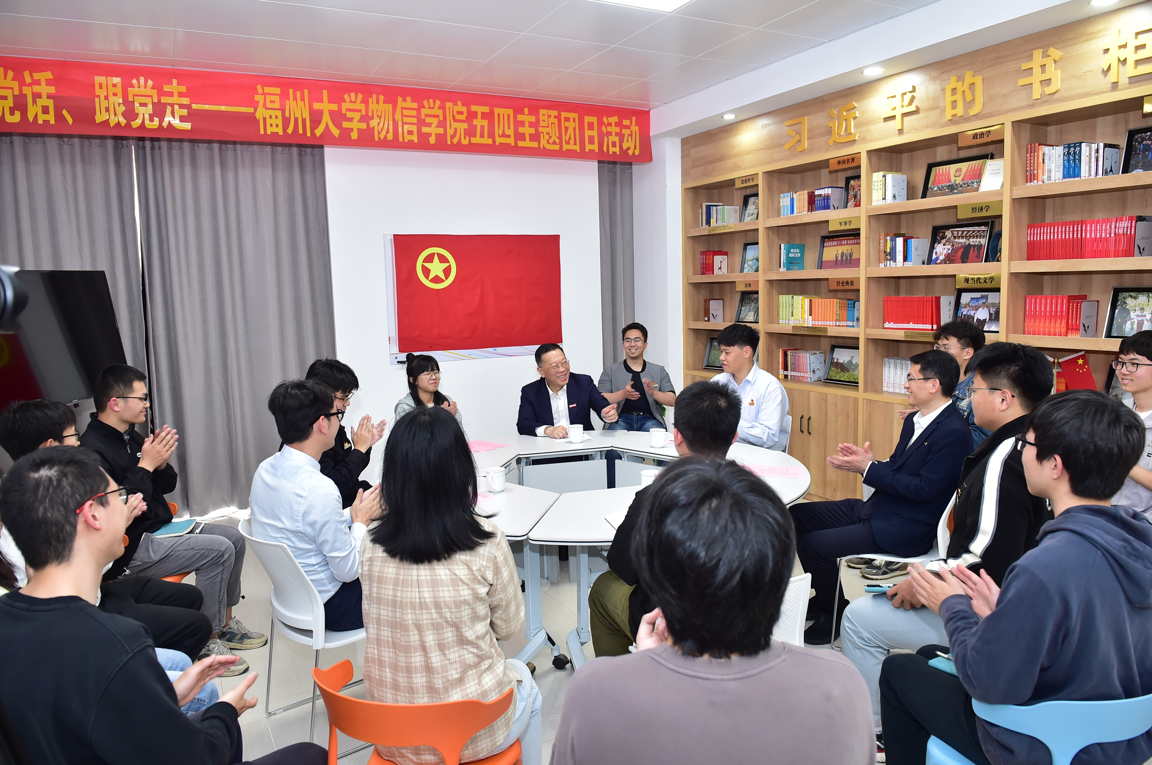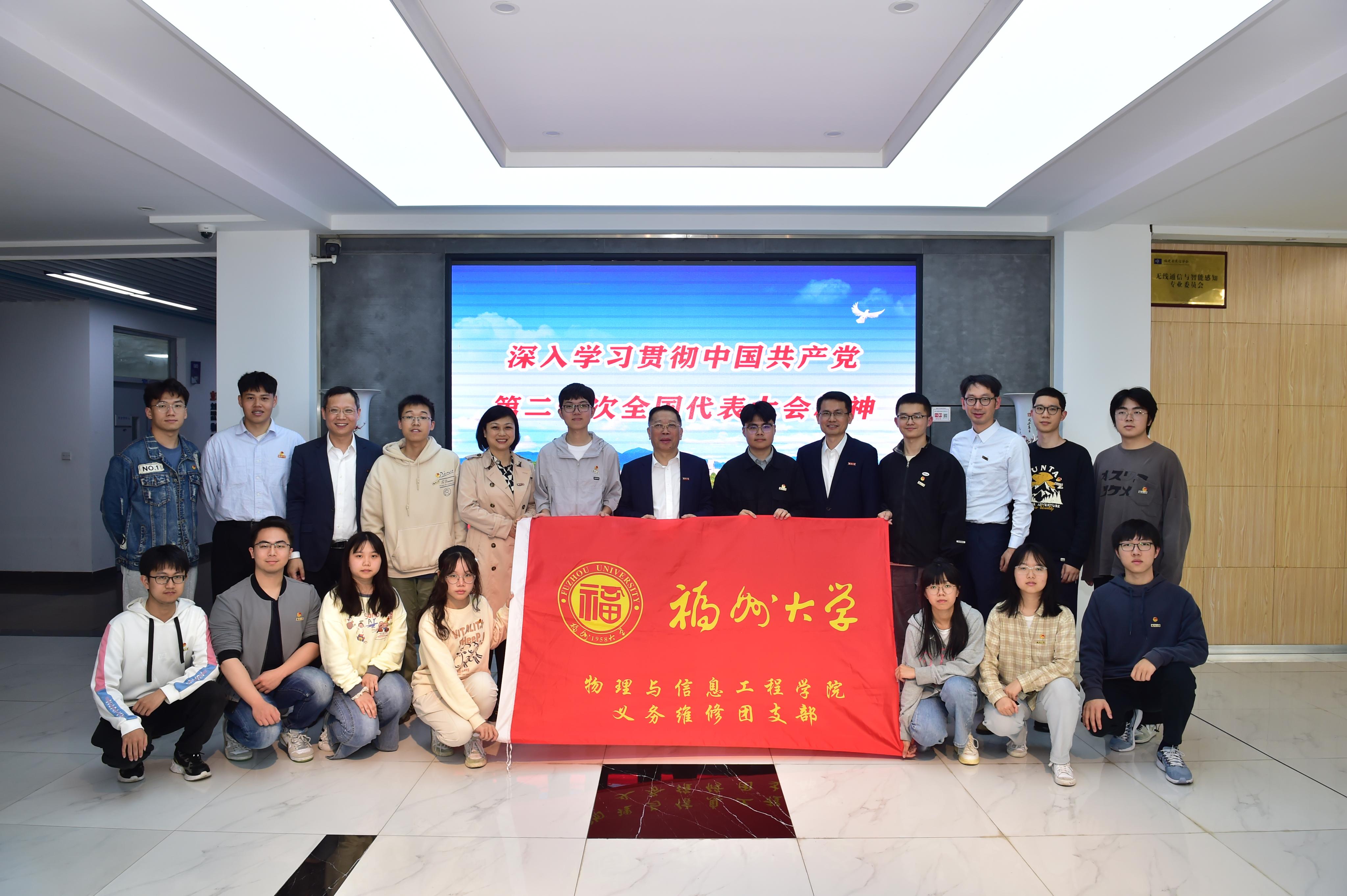 陈国龙书记认真听取了大家的发言,对同学们积极投身志愿服务,在服务人民、服务社会的同时也收获了个人成长给予了充分的肯定。他勉励同学们要坚定不移听党话、跟党走,努力学习,勇于实践,使自己成长为德智体美劳全面发展的有用人才。他强调,要有家国情怀,坚定理想信念,把爱国情、报国志转化为实际行动;要有过硬本领,珍惜韶华,勤奋学习,掌握专业知识和技能本领,敢想敢为又善作善成,更好地报效国家。要有创新意识,善于在继承中创新,培养敢闯会创的精神和品质;要有国际视野,要跳出自己的“一亩三分地”,胸怀祖国又放眼世界,不断提升自己的格局和视野。陈国龙书记祝愿义务维修队队员在大学学习期间能够有进步,有提高,能出彩。