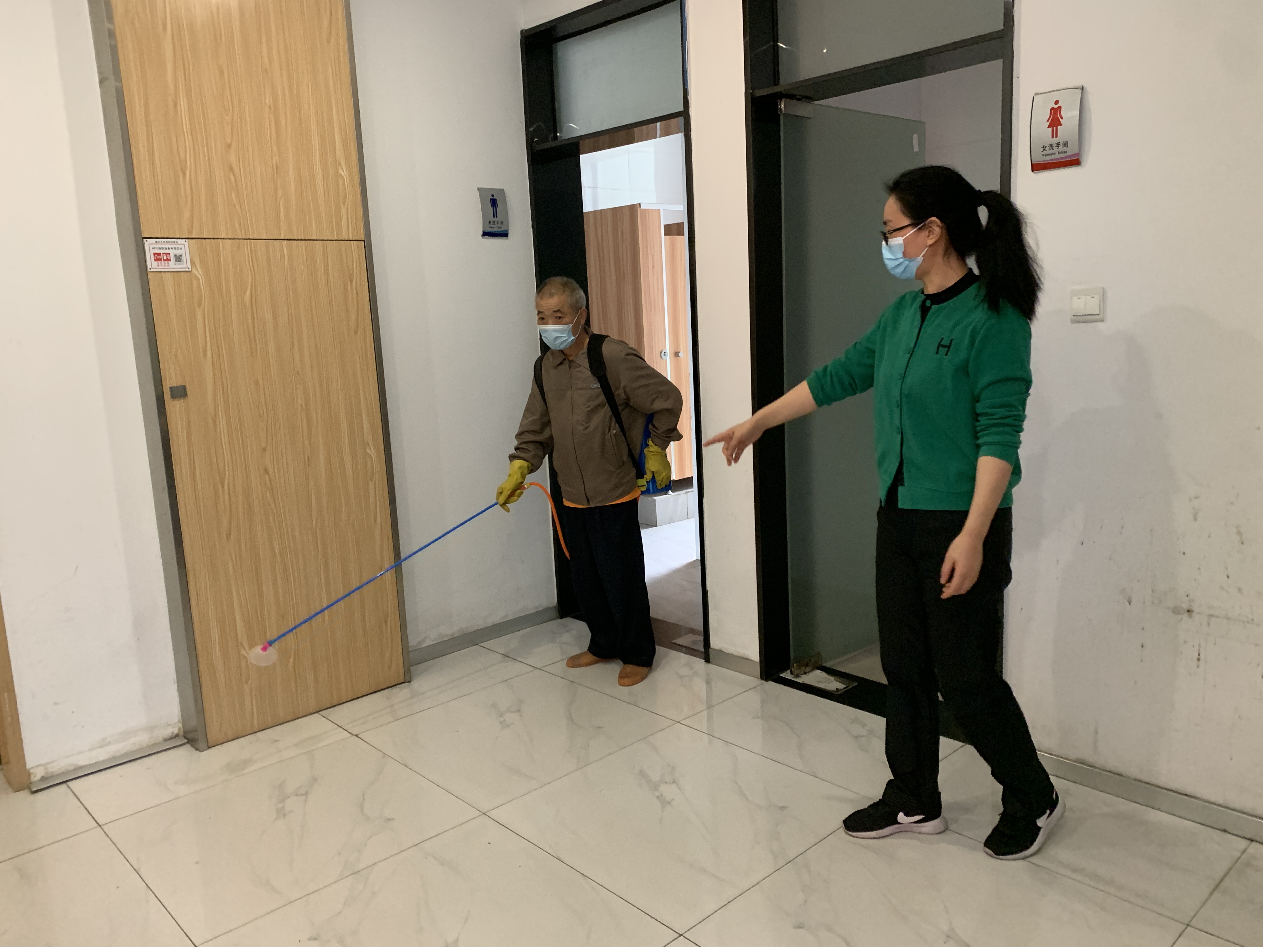 图 办公室主任谢荣华组织开展每日办公场所消杀工作