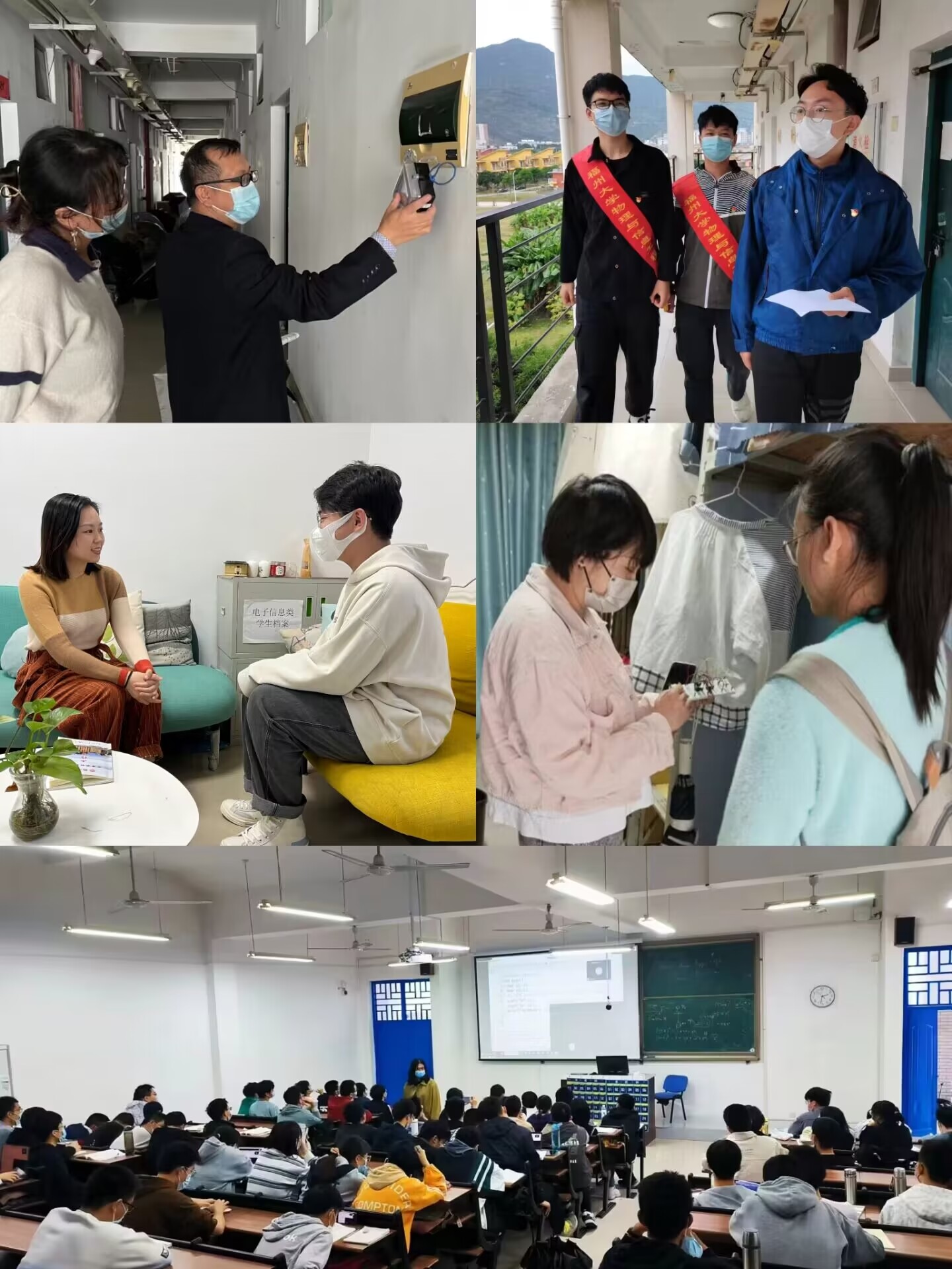 辅导员联合工作队伍,闻令而动,乐于奉献。全体辅导员老师第一时间从常态化疫情防控转入应急状态,抓实抓细学生疫情防控工作。以“生”为本,每日精准摸排在校学生情况,确保防疫全覆盖;用爱护航,深入课堂和宿舍关心同学,针对疫情期间学生心理、学业、就业、家庭等具体问题开展指导和帮扶,为学生保驾护航;以身作则,带头学习贯彻党的二十大精神,组建年段青年突击队,有序开展课堂考勤、社区督导、核酸检测志愿服务等工作,全力做好学生成长成才的人生导师和健康生活的知心朋友。