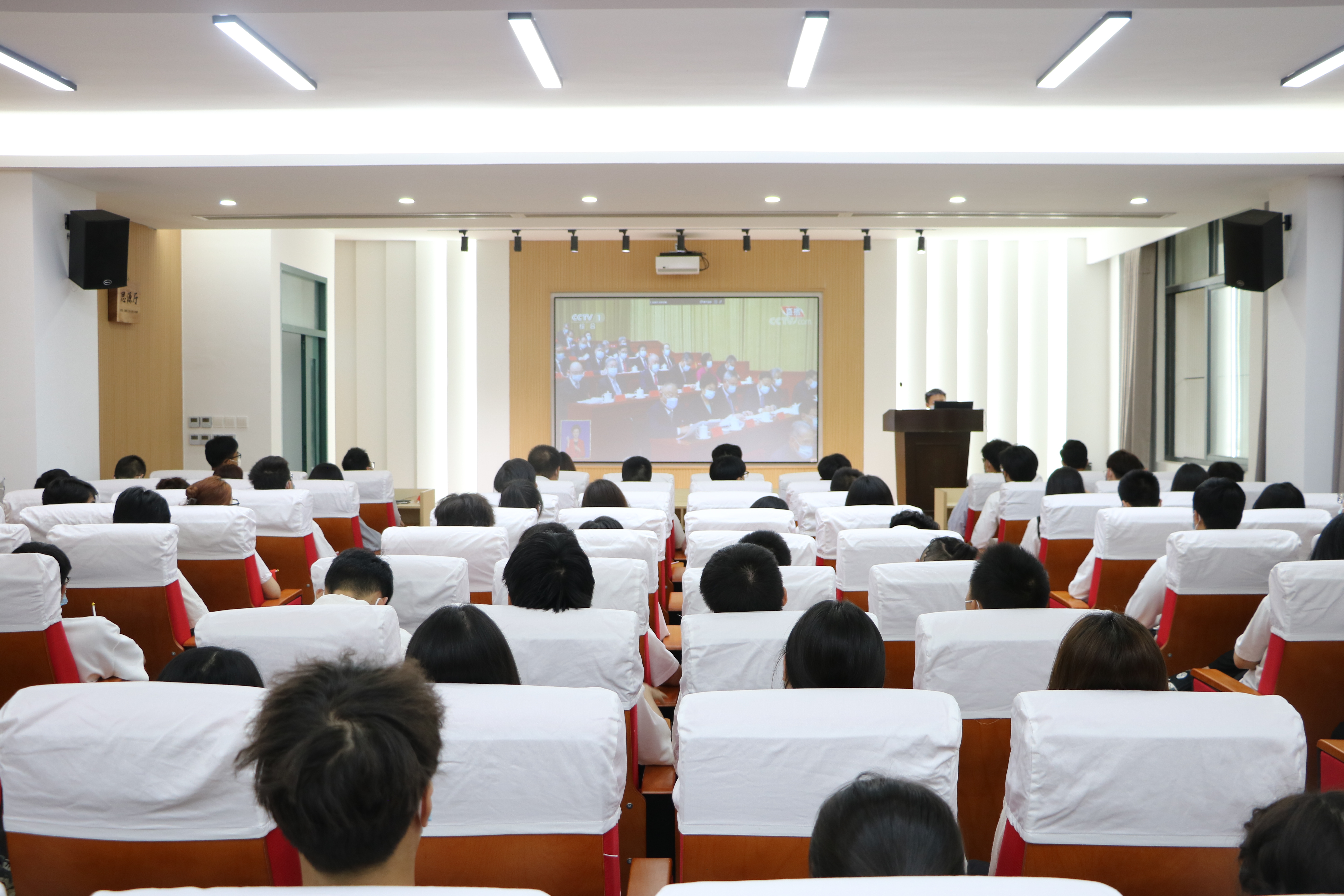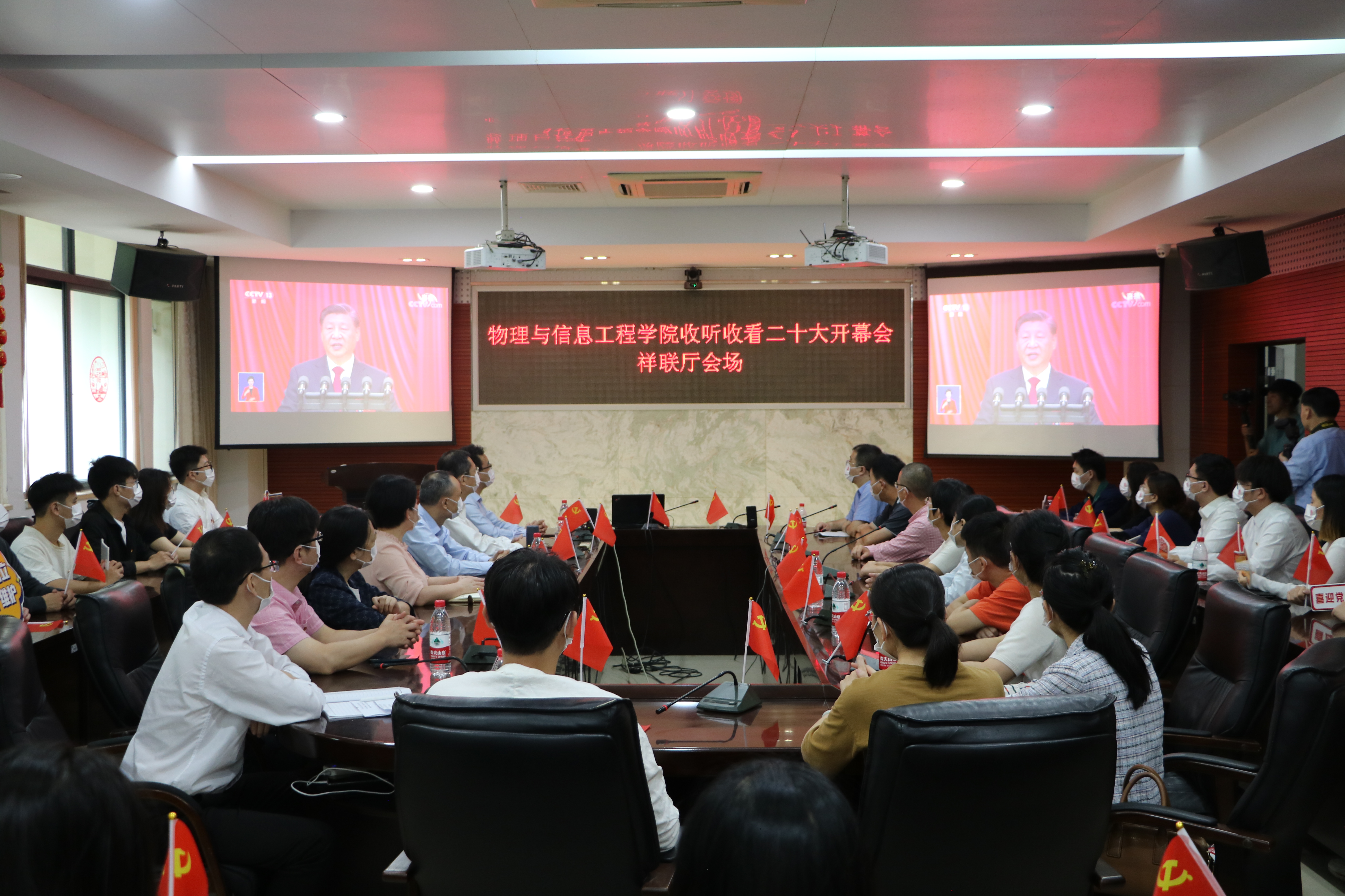 党委在祥联厅、思源厅、105展室、融合创新实验室、北斗党支部活动室、学生公寓活动室等多个场所组织集中收听收看,聆听习近平总书记代表十九届中央委员会向大会所做的报告。学院党政班子成员、各党支部书记以及师生代表参加了收看。