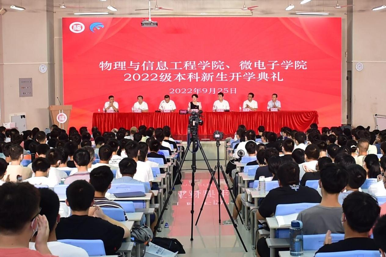 朗朗金秋,学期伊始。2022年9月23日下午3点,物理信息与工程学院、微电子学院2022级本科新生开学典礼于铜盘校区科报厅A(主会场)科报厅B(分会场)举行。学院党政领导、各系办(中心)主任、2022级新生班主任、学工组辅导员及全体2022级本科新生参与典礼。典礼由学院党委副书记郑志刚主持。