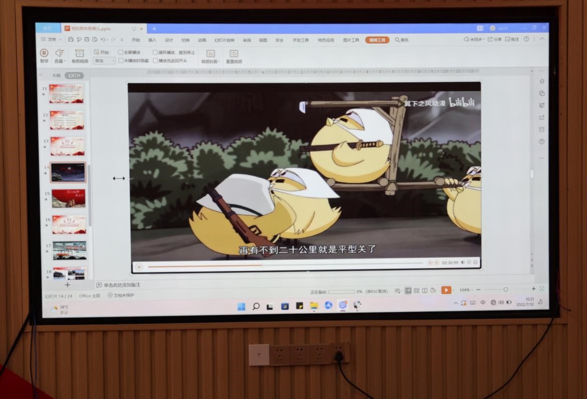 随后,实践队员借助播放动画《那年那兔那些事儿》,通俗易懂地向小朋友们介绍中国共产党发展历程中的重要历史事件,如:九一八事变、红军二万五千里长征等,并在每个知识点前后后穿插提问抢答环节,提高小朋友们的课堂参与度,再通过游戏“补全党史列车”来提高他们对知识的掌握程度。
