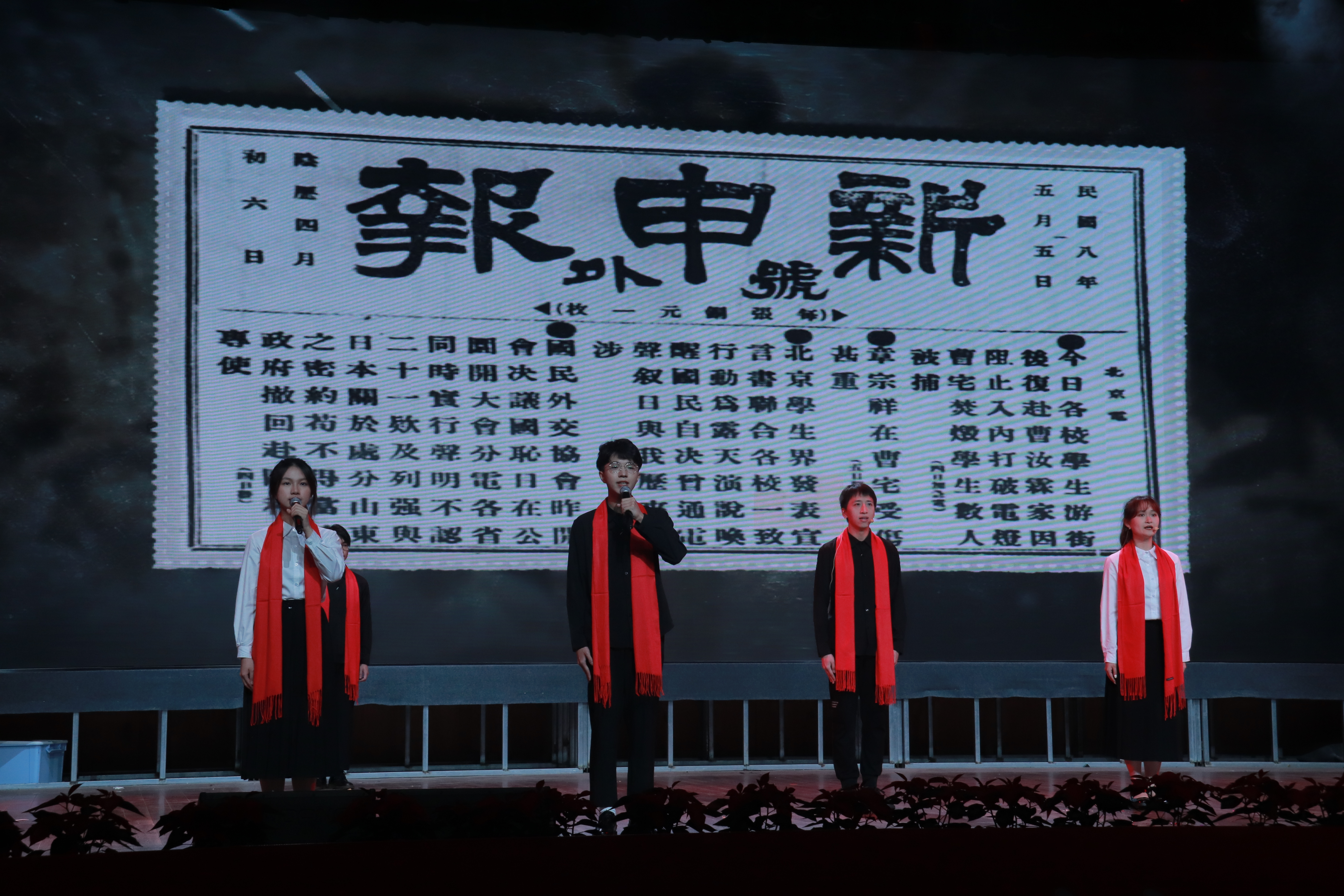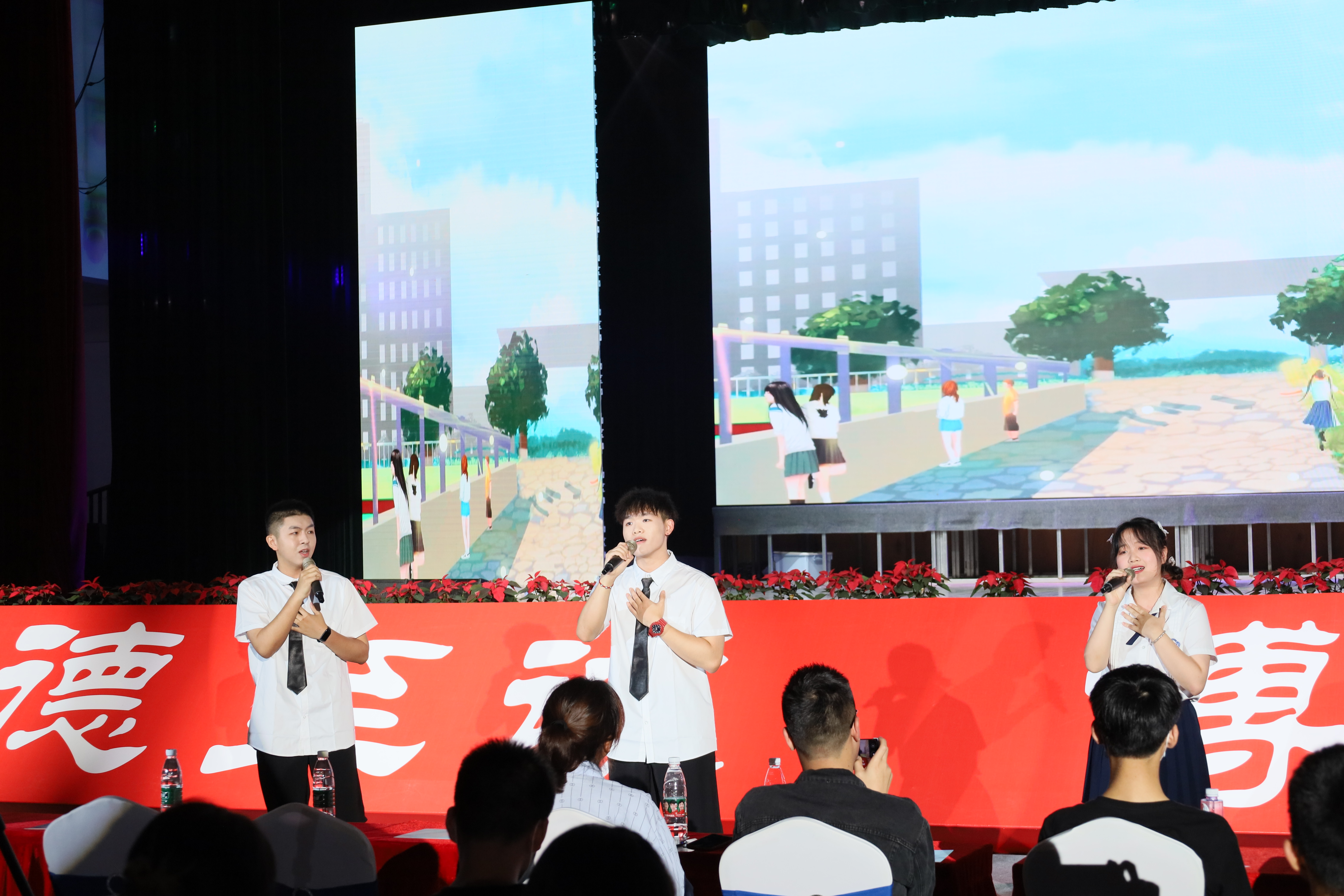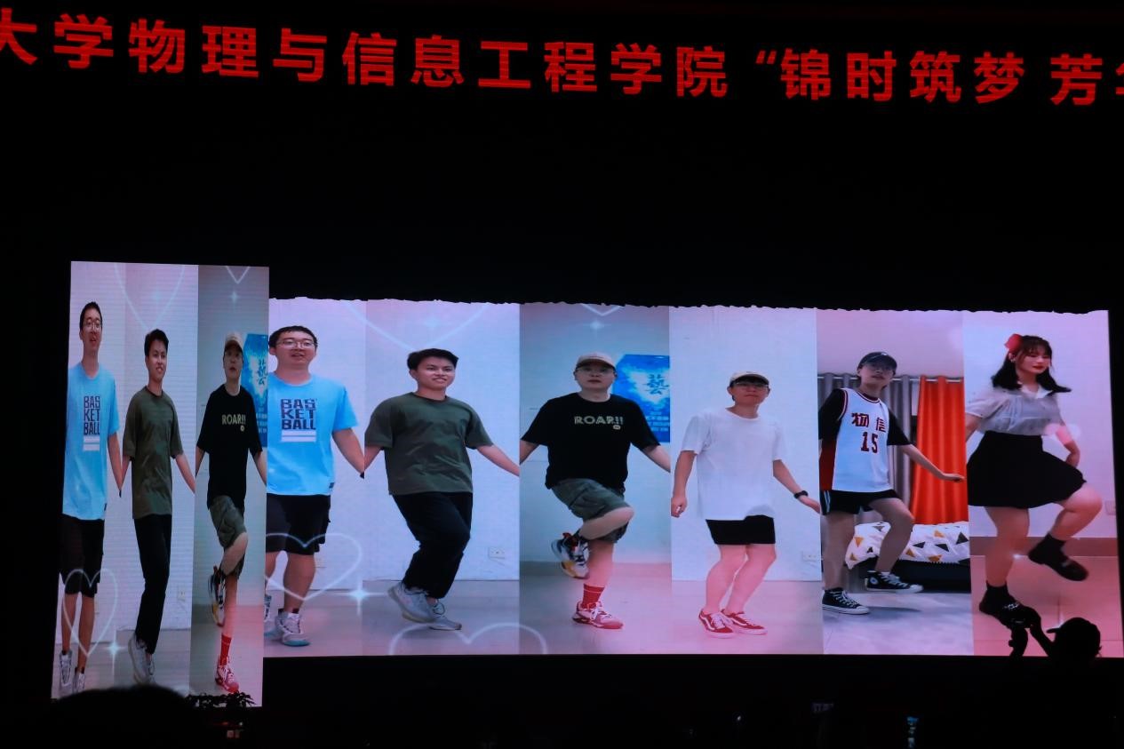 随后艺术团主持队带来音诗画表演《红色的种子》,深情回顾历史辉煌,赓续红色基因,为书写新时代篇章庄严宣誓。电子信息类二班带来舞蹈《超级加倍》,轻松俏皮的风格,引得现场观众席笑声不断。最后,歌曲《凤凰花开的路口》响起,歌声伴随着毕业生各班的电子纪念相册和视频的播放,大学期间校园生活的点点滴滴跃然于眼前,引发了强烈共鸣。