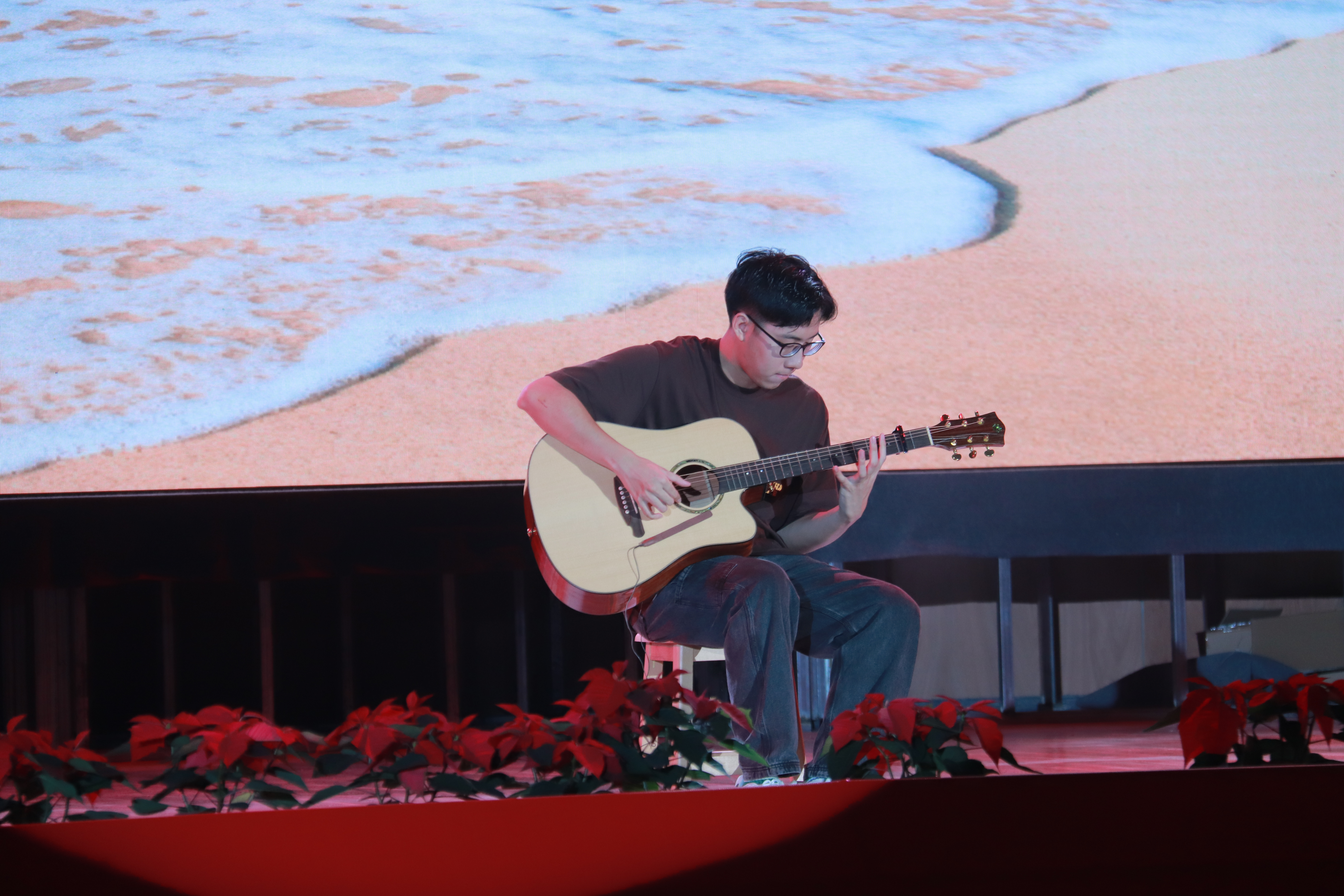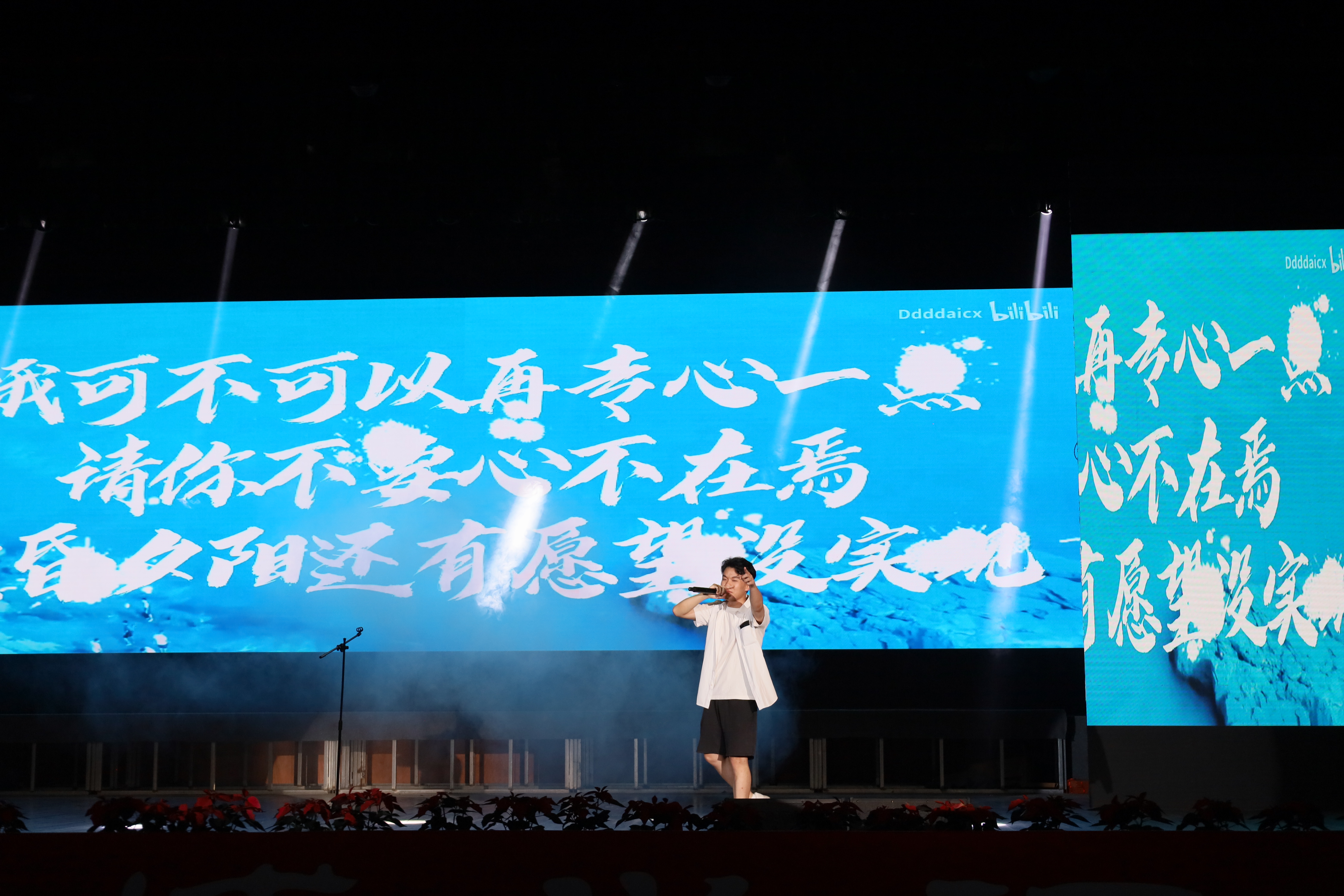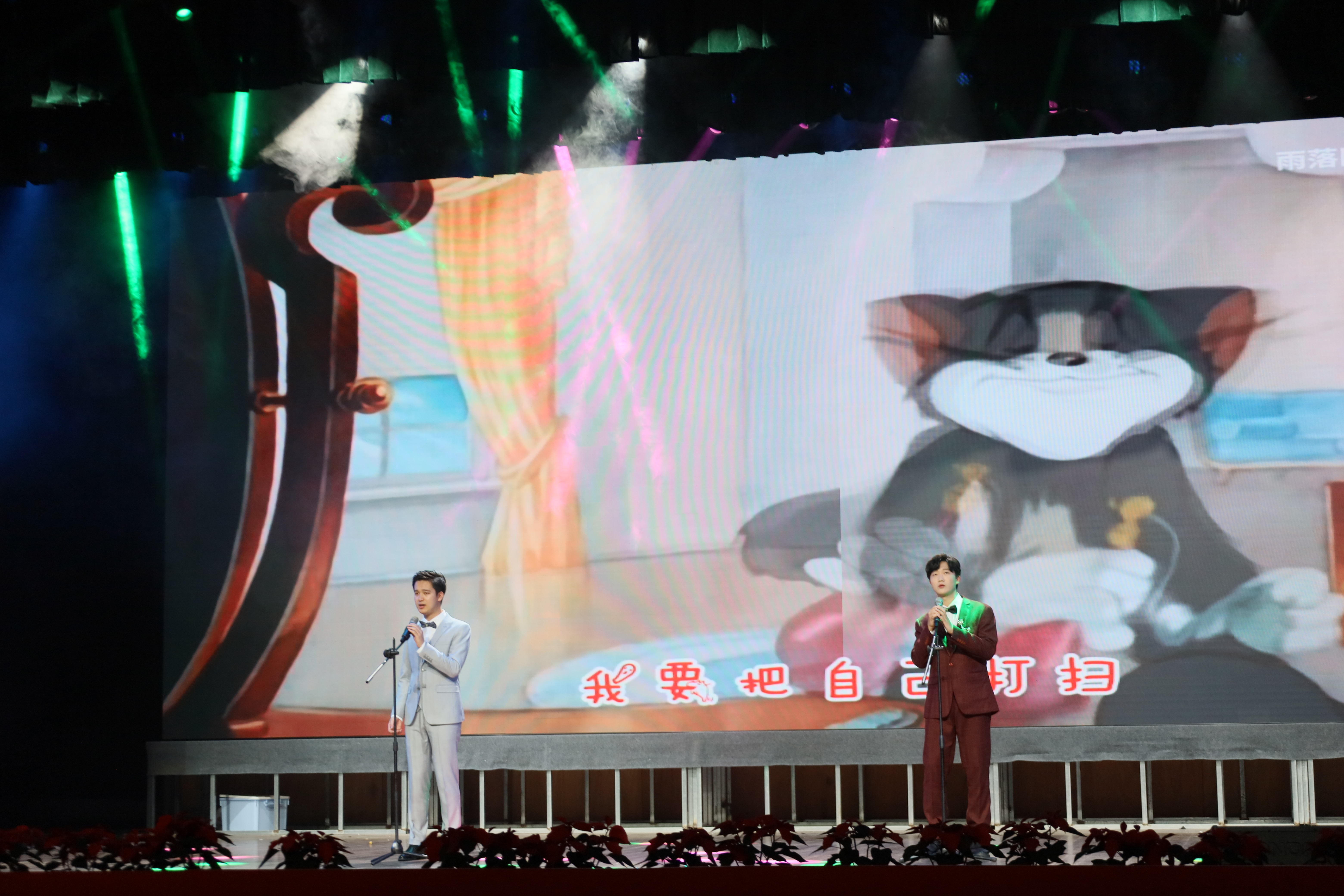 在上半场的表演中,双人合唱歌曲《如果说》牵动着同学们的心弦。紧接着,欢快的旋律响起。电子信息类一班带来的歌舞表演《大家一起喜羊羊》引得台下笑声连连。吉他弹唱《约定的海》、歌曲串烧《入海》更是带动全场一起合唱。