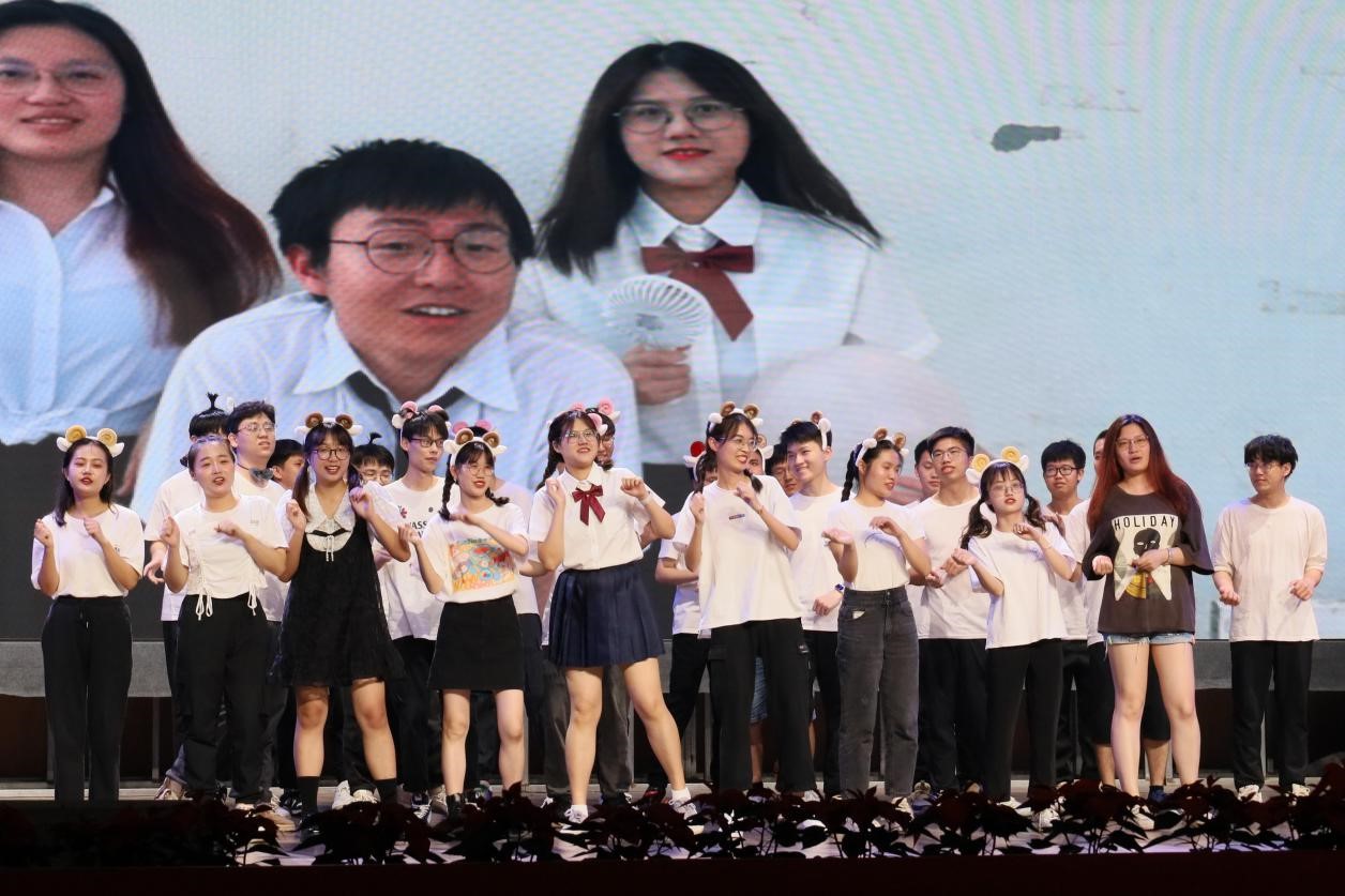 在最后的“彩蛋”环节,来自毕业班辅导员精心准备的节目让忍俊不禁,但更多的是感动与不舍。相知相伴四年时间,辅导员们早已成为同学们家人一般的存在。在致辞中,辅导员们为同学们送上了最真挚的祝福,希望各位物信学子前程似锦,未来可期,终顶峰相见!
