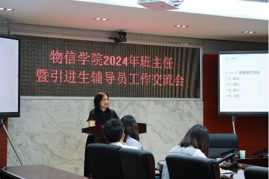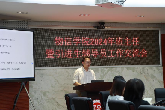 、微电子学院2023-2024学年第二学期班主任暨引进生辅导员工作交流会在物信学院祥联厅顺利举行。物信学院党委副书记郑志刚、团委副书记苏海姬、2023级本科生辅导员刘涛、往届优秀班主任代表、2023级新生班主任及引进生辅导员参加了此次会议。