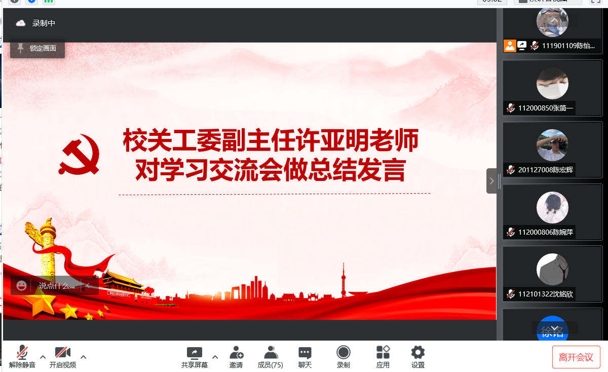 物信学院线上开展《习近平与大学生朋友们》学习心得交流会