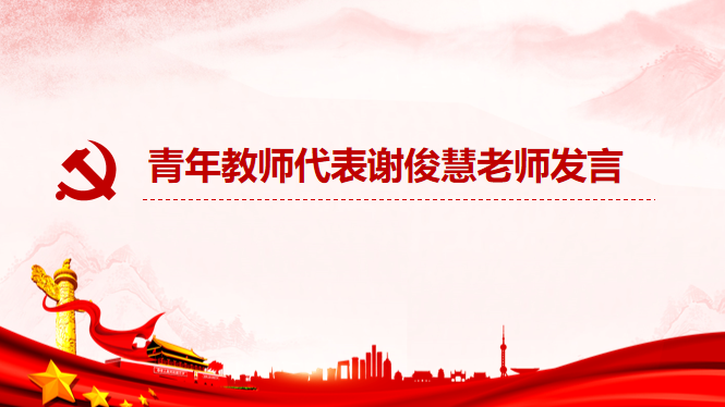 青年教师代表谢俊慧表示会始终不忘立德树人的初心,牢记为党育人、为国育才的使命,积极探索新时代教育教学的方法,不断提升自身教书育人的本领,为培养德智体美劳全面发展的社会主义建设者和接班人做出更大的贡献。