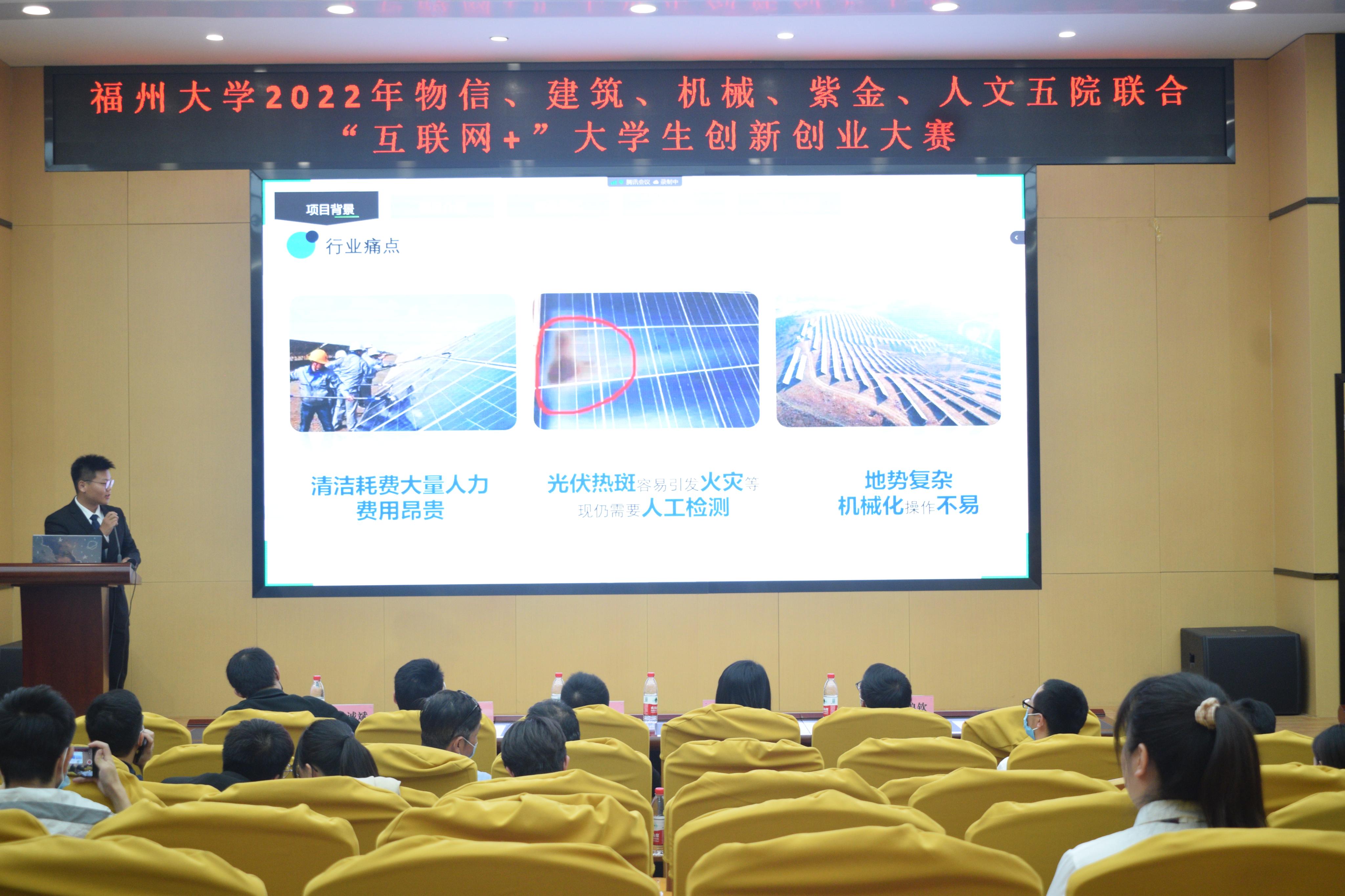 深化高等教育综合改革,激发大学生的创造力,培养造就"大众创业、万众创新"的生力军,推动高校毕业生更高质量创业就业。415日晚,Av在线看 物信、建筑、机械、紫金、人文五院联合第八届“互联网+”大学生创新创业大赛院赛决赛在建筑与城乡规划学院一楼科报厅举办。