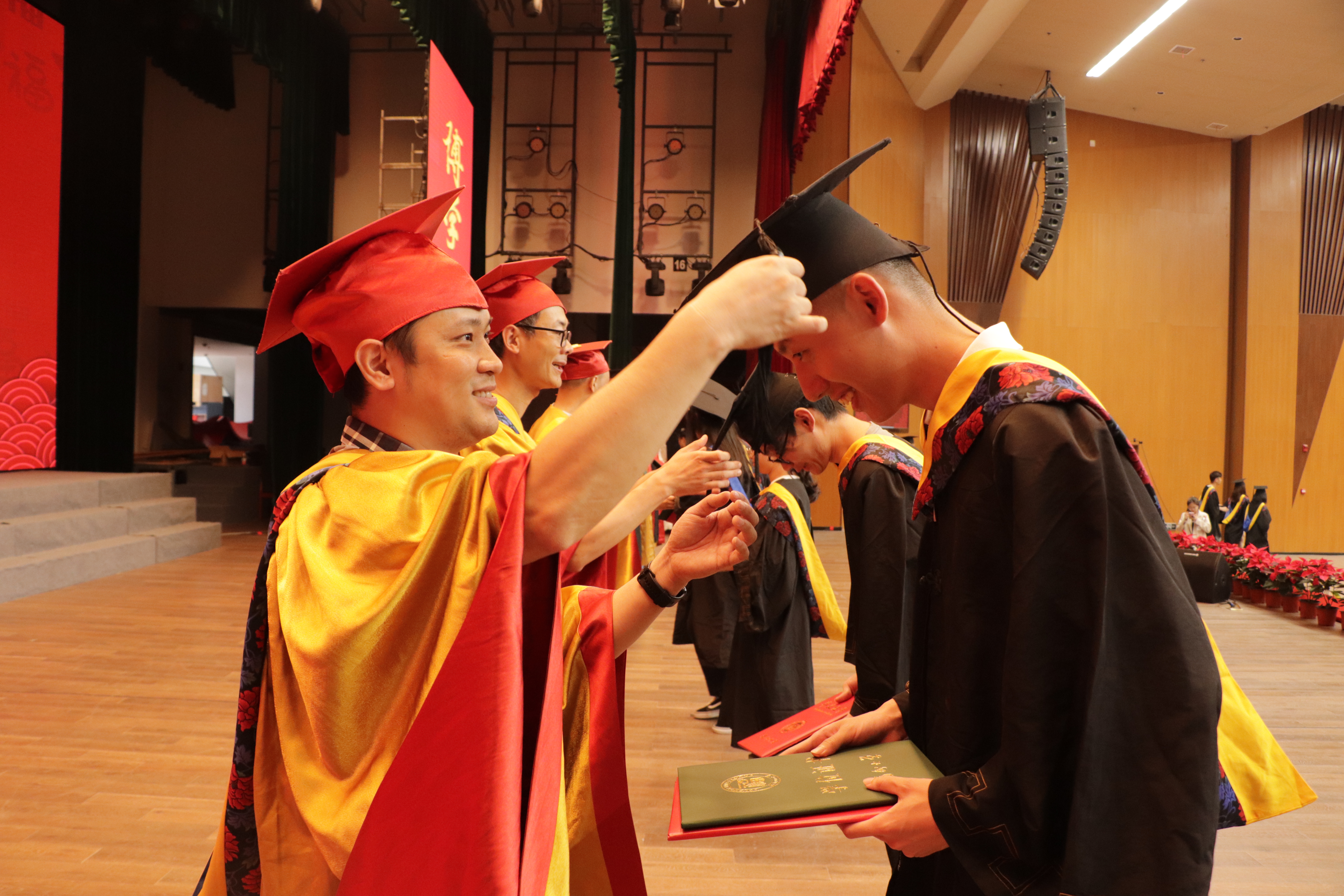 典礼的最后一项议程,由张红书记、吴唐风副书记依次为Av在线看2020、2021届博士毕业生、硕士毕业生、本科毕业生颁发学位证书,由导师程树英教授、李福山教授、夏岩教授、魏榕山教授、赵铁松教授、孙捷教授、吴怀志教授、黄立勤教授为2020、2021届毕业生执拨穗礼。