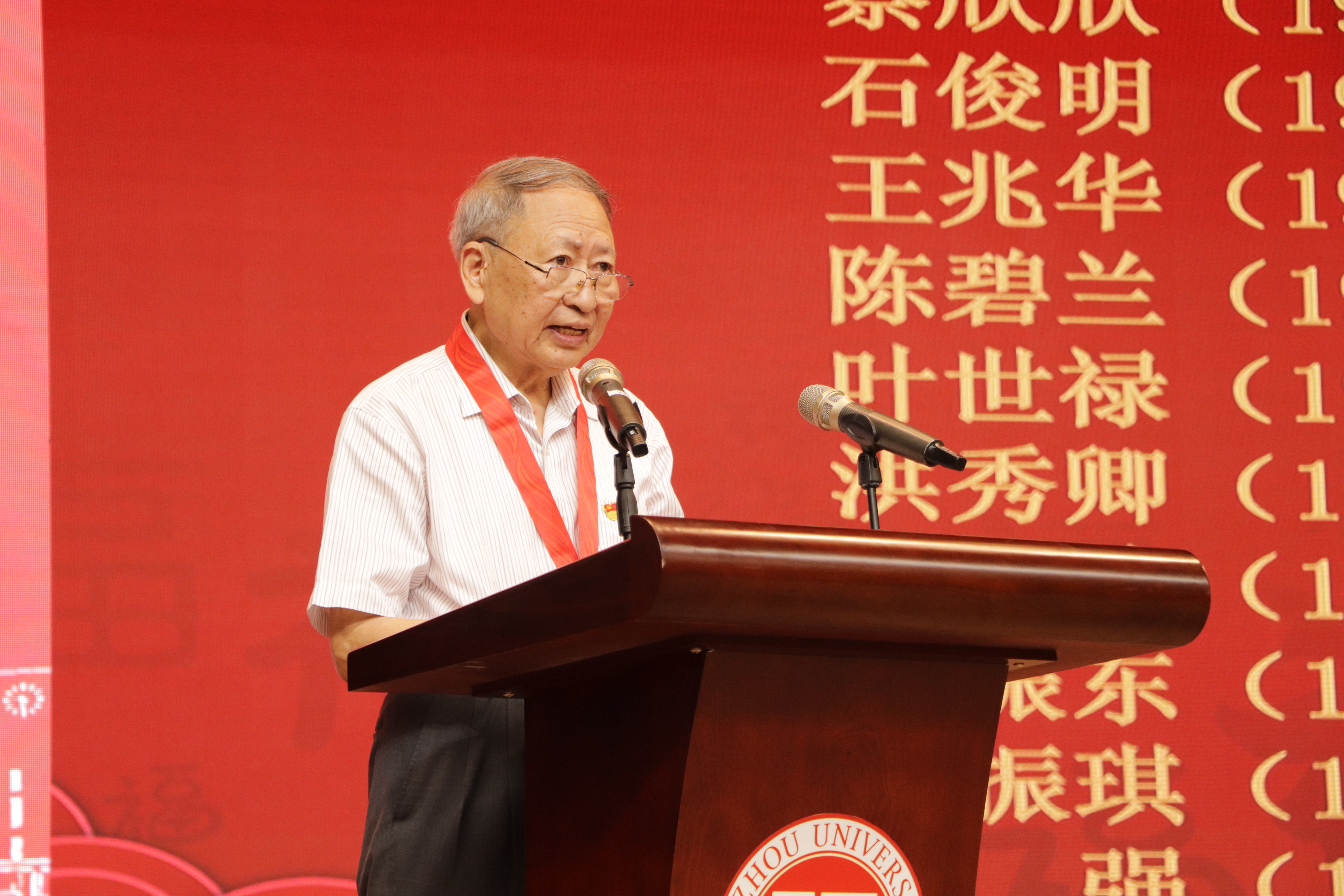 典礼的第三篇章“念师恩:依依惜别,行远思恩”是“光荣在党50年”纪念章颁发仪式暨感恩谢师礼。今年,正值热烈庆祝中国共产党成立100周年之际,为进一步增强党员的荣誉感、归属感、使命感,党中央决定首次颁发“光荣在党50年”纪念章,本次Av在线看共有11名退休党员教师受到表彰。学院党委借毕业典礼之际举办“光荣在党50年”纪念章颁发仪式,由张红书记为亲临现场的8位党龄超过50年的教师党员颁发了纪念章,并由毕业生们为老师们献上花束,送去最真诚的敬意,感谢老师们为党的教育事业贡献了毕生的力量。林强老师代表各位老党员发表了讲话。