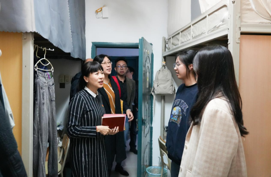 座谈会结束后,林林馆长一行实地走访学生宿舍,关心了解同学们平时学习习惯,询问同学们在图书馆的学习体验。她提出,同学们要珍惜优越的学习和生活环境,努力学习、追求卓越,培养良好的学习习惯和积极向上的人生态度,争做胸怀理想、奋发有为的时代新人。