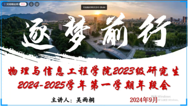 为进一步提高研究生思想道德水平,强化物信学院2023级研究生的安全法治意识,优化学生教育管理服务工作,2024年9月25日,物信学院2023级研究生以“逐梦前行”为主题的年段大会在线上腾讯会议召开,会议由2023级辅导员吴雨桐老师主讲。