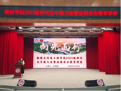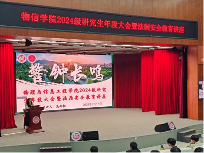 在图书馆博学厅举办了法制安全教育讲座。此次活动邀请到荷塘派出所所长游斌警官担任主讲,开展题为《守护青春,安全同行》的专题讲座,物信学院全体研究生参加了此次活动。