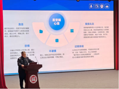 讲座中,游斌警官以其丰富的执法经验和深刻的安全教育理解从“青春反诈,计在我心”——防范电信网络诈骗、“筑牢青春防线”——预防学生犯罪、“人生最大的智慧是安全”——珍惜生命三个部分展开讲述。游斌警官首先强调了安全在校园生活中的重要性,并指出没有安全,一切学术追求和人生梦想都将无从谈起。随后在预防学生犯罪方面,游斌警官详细介绍了几起涉及大学生的违法犯罪案例,包括侵犯公民个人隐私、网络上发表不当言论等。通过这些案例,学生们深刻认识到了法律的严肃性和违法犯罪的严重后果。他强调,大学生作为国家的未来,更应该珍惜自己的前程,尊重他人隐私,不要因为猎奇心理做出违法乱纪的事情。游斌警官在讲座的最后,鼓励学生们珍惜青春、勇敢追梦,在推进强国建设、民族复兴伟业中展现青春作为、彰显青春风采、贡献青春力量。